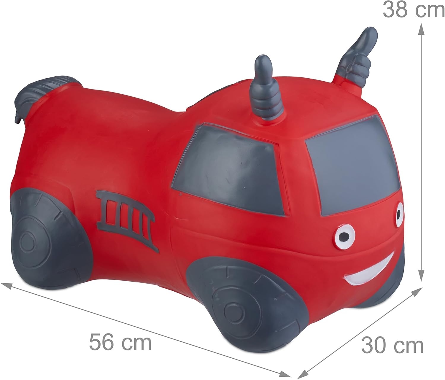 Divertente: gioco gonfiabile a forma di camion dei pompieri - saltare afferrandolo dalle antenne Robusto: il salterello sostiene fino a 50 kg - giocattolo divertente per bambini a partire da 3 anni Per i bambini: il gioco salta-salta stimola l'equilibrio e la coordinazione mani e gambe dei bambini Pompa d'aria: gioco gonfiabile con pompa a mano - facile da gonfiare e averlo pronto per il gioco Dettagli utili: misure complessive giocattolo H x L x P: ca. 38 x 30 x 56 cm - in PVC privo di BPA