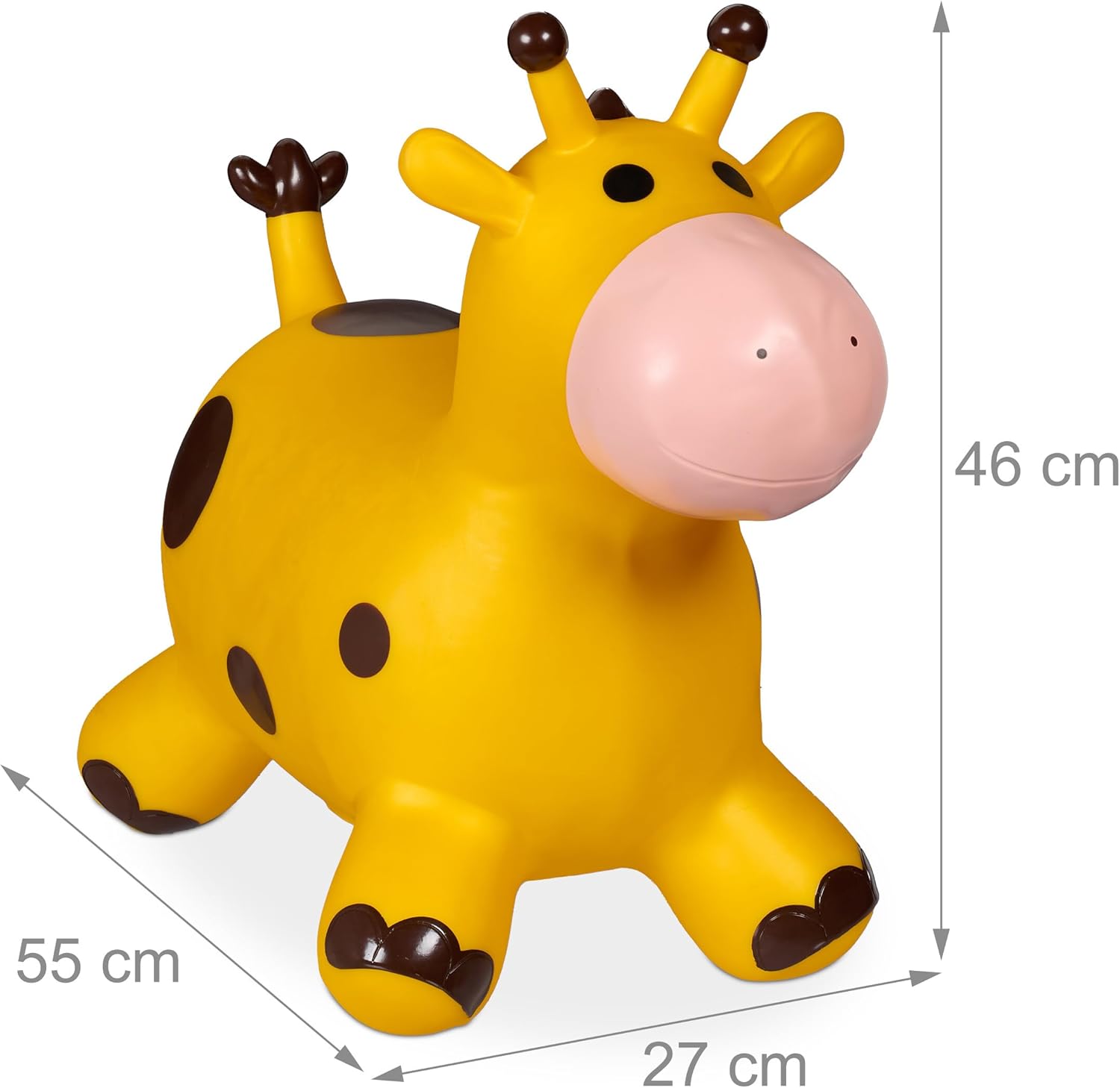 Divertente: simpatica giraffa giocattolo gonfiabile - ottimo per saltare afferrandolo dalle orecchie Robusto: il salterello sostiene fino a 50 kg - giocattolo divertente per bambini a partire da 3 anni Per i bambini: il gioco salta-salta stimola l'equilibrio e la coordinazione delle mani e gambe Pompa d'aria: gioco gonfiabile con pompa a mano - facile da gonfiare e averlo pronto per il gioco Dettagli utili: misure complessive giocattolo H x L x P: ca. 46 x 27 x 55 cm - in PVC privo di BPA