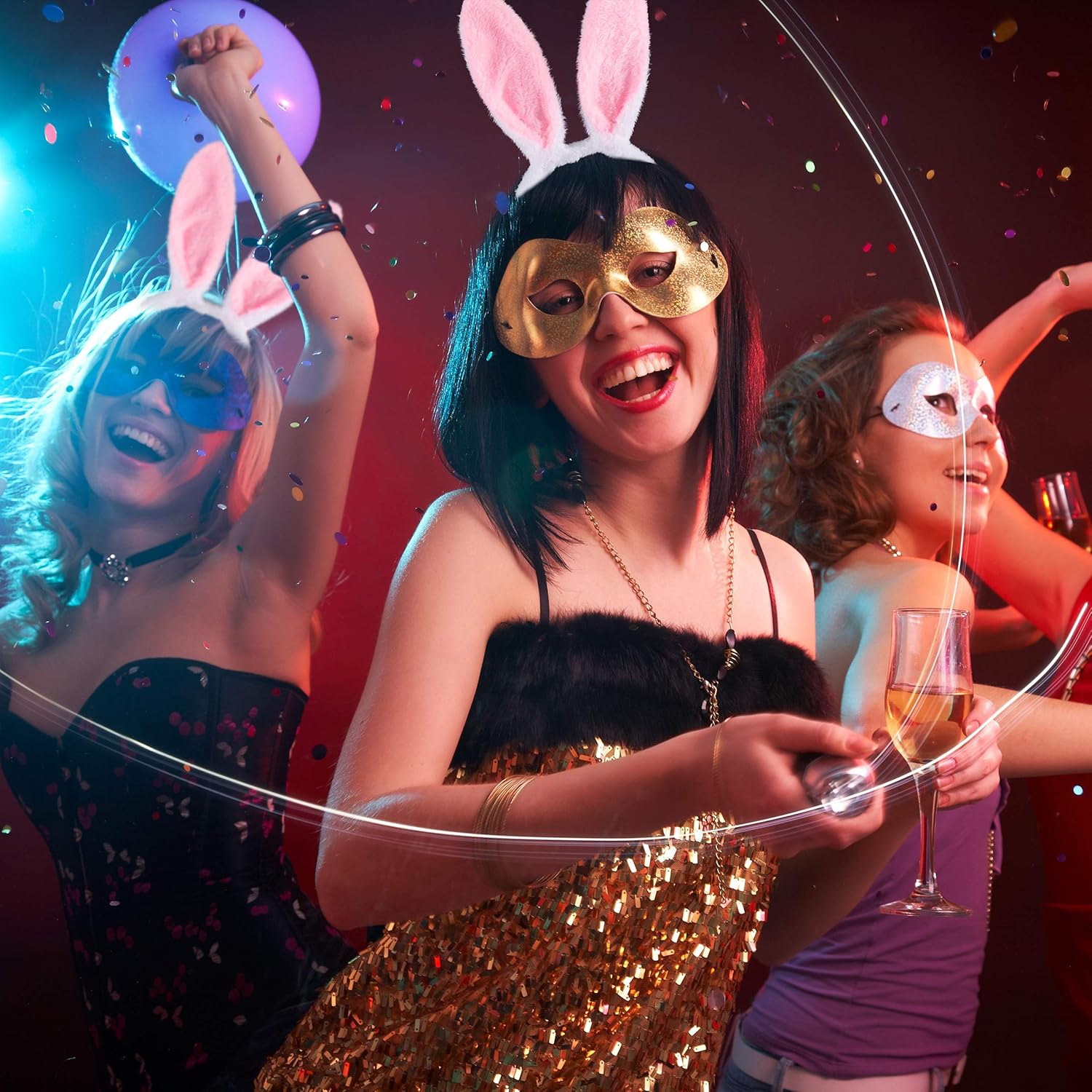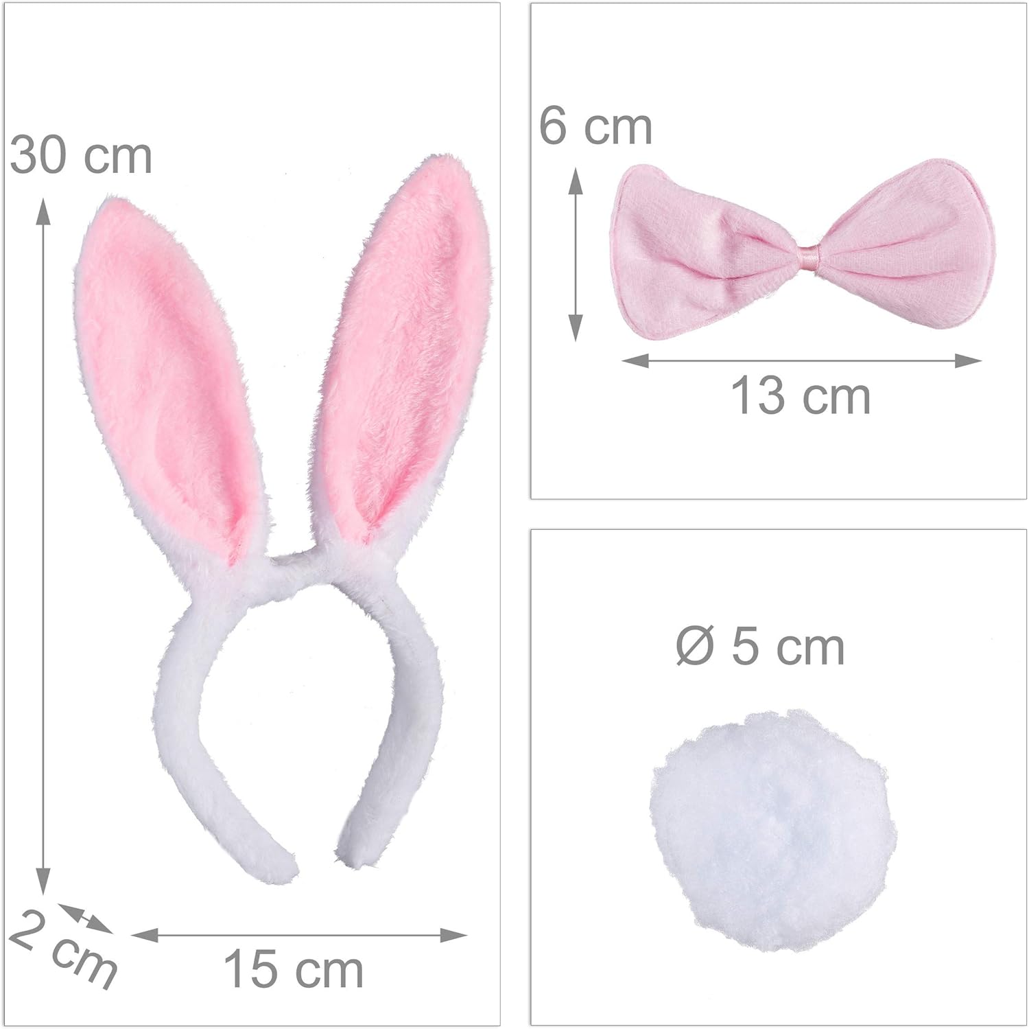Set da 3: completo con orecchie da coniglietto, cerchietto per capelli, papillon e coda con elastico Accessori: per vestirsi da coniglietta o adorabile coniglietto - le orecchie completano il set Morbido: kit da coniglietta con orecchie, papillon e coda - orecchie con filo di ferro interno Versatile: kit da coniglietta per bambini e adulti - per carnevale, feste a tema, eventi, ecc... tema, eventi, ecc... Dettagli: cerchietto con orecchie lunghe ca 30 cm - diametro della coda: 5 cm