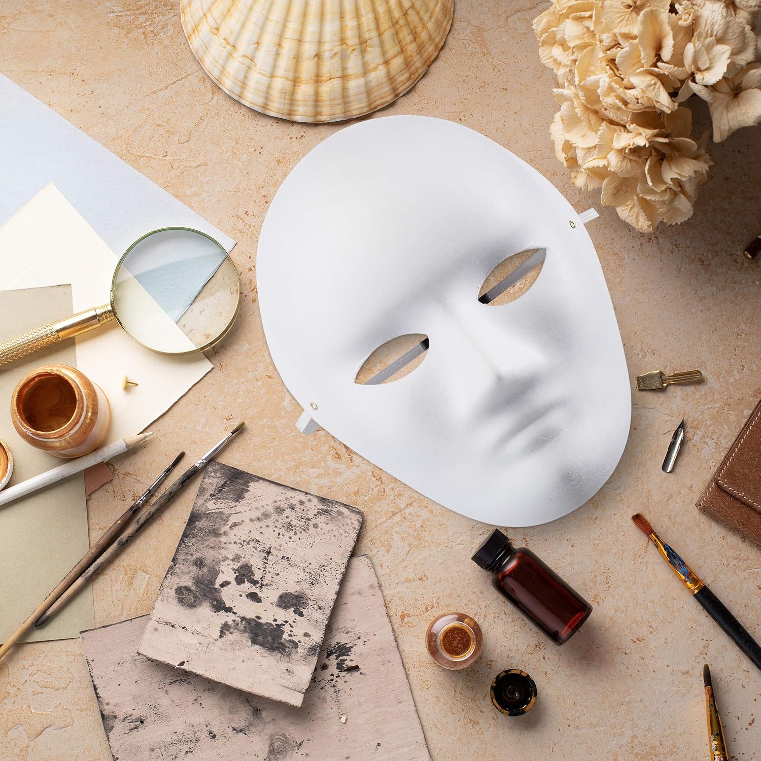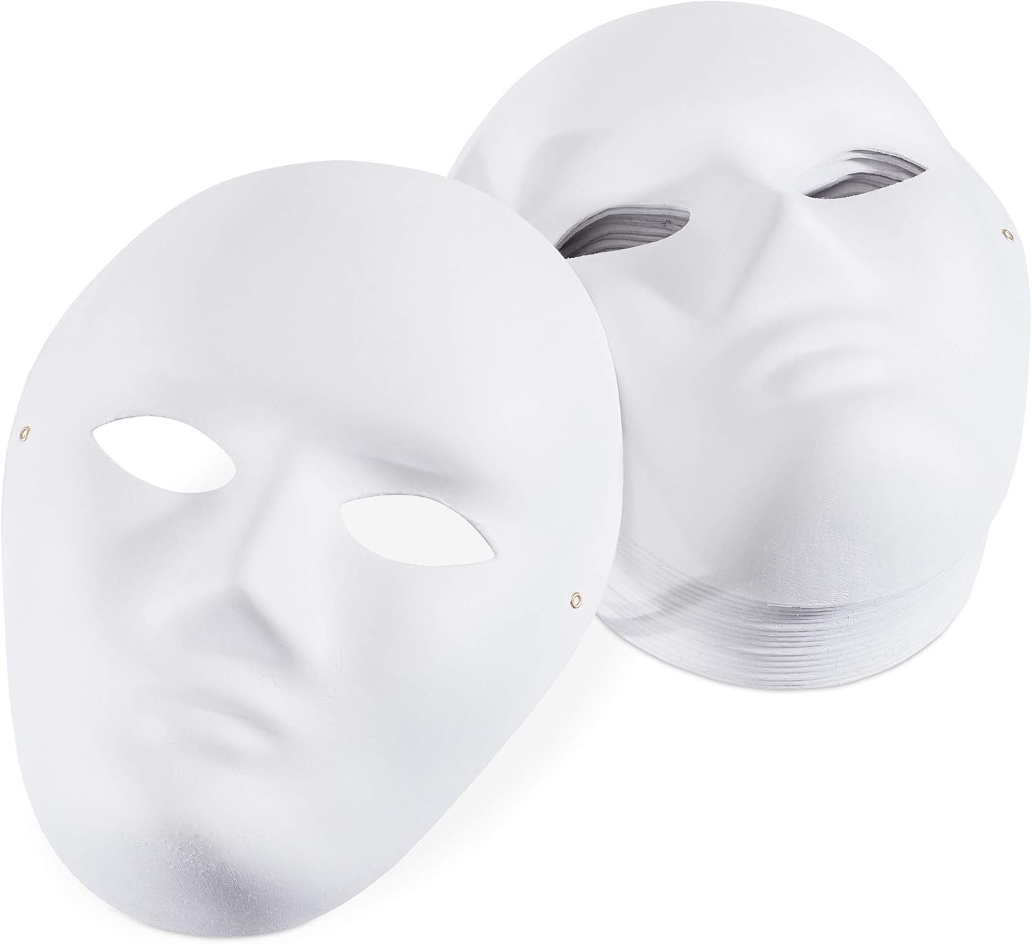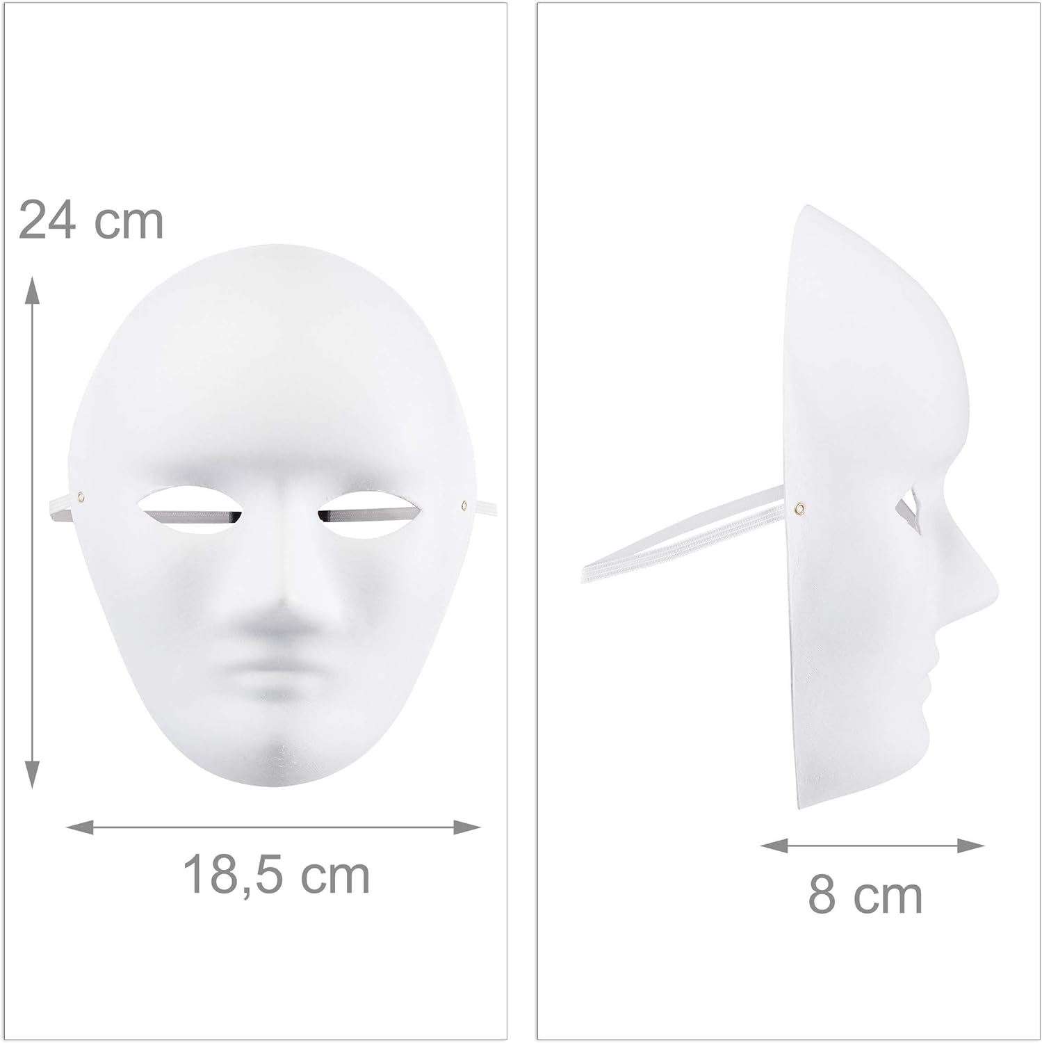 Travestimenti: set di maschere per carnevale, Halloween o altre feste - multiuso e personalizzabili DIY: superficie bianca e neutra - da dipingere o decorare con colori o adesivi In set: 20 maschere per travestimenti di gruppo o per bambini alle feste di compleanno Materiale: realizzate interamente in cartone rigido - per disegnare con colori o attaccare adesivi Dettagli: ciascuna maschera è dotata di un elastico per il fissaggio sul volto - HLP 24x18,5x8 cm ca