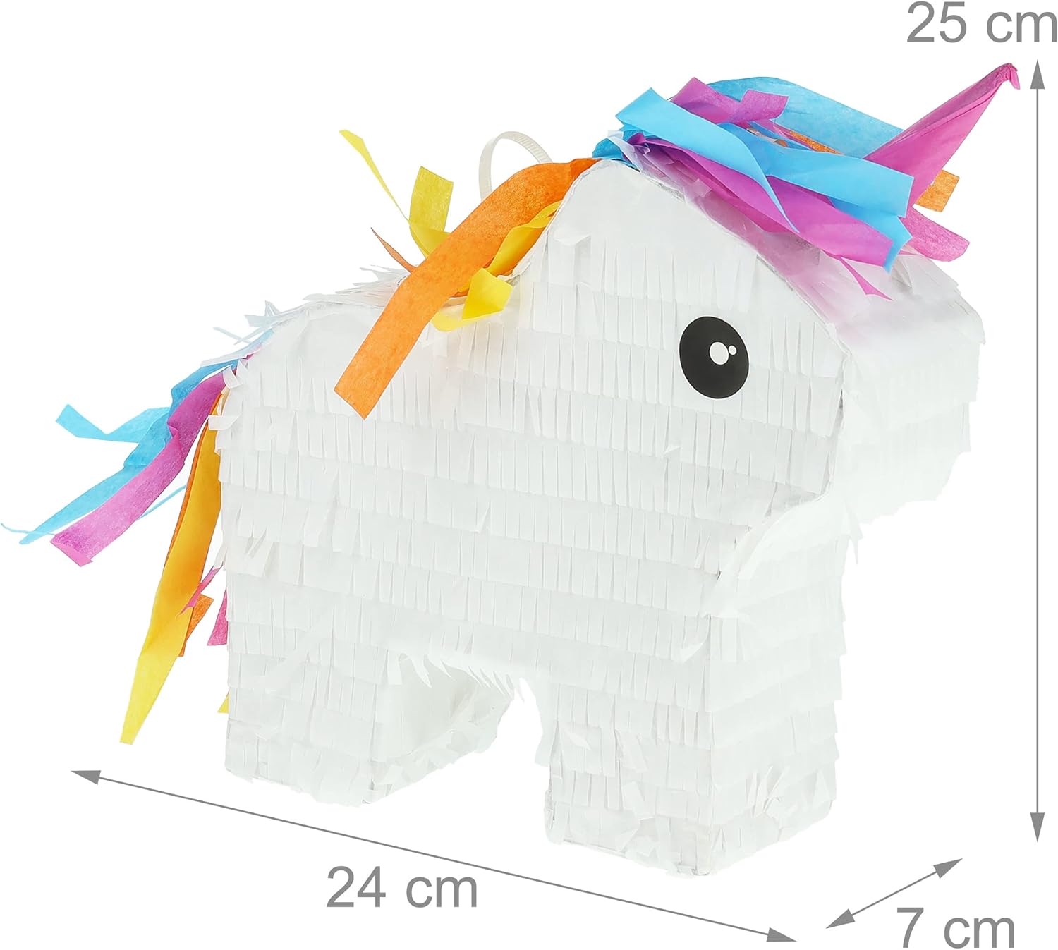 Pinata: intrattenimento colorato per feste di compleanno - Divertimento garantito per bambini e adulti Senza riempimento: piñata decorativa da riempire - Ideale per dolci, giocattoli o coriandoli Gioco di società: colpisci la piñata unicorno con gli occhi bendati finché non si apre Estetica: decorazione divertente per compleanni o addii al nubilato Info: dimensioni AxLxP: ca. 25x24x7 cm - carta e cartone - unicorno nei colori dell'arcobaleno