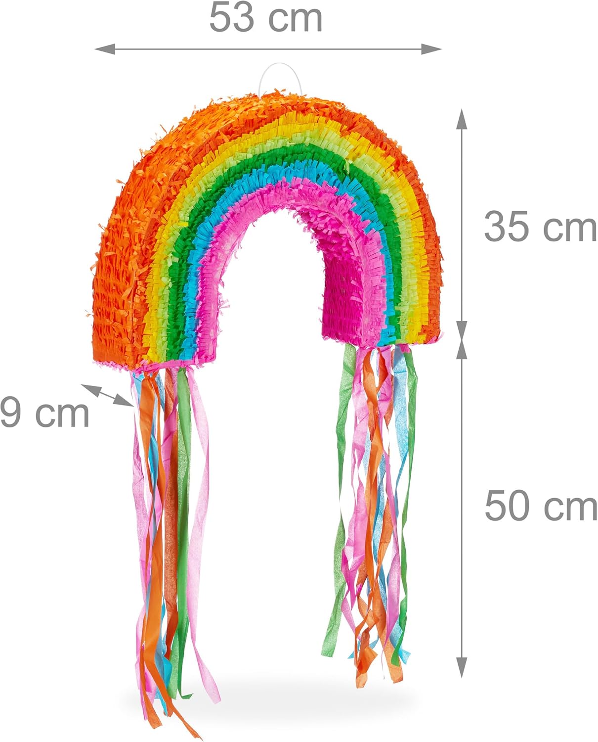 Colorata: pignatta arcobaleno come highlight alla prossima festa di compleanno - Con benda e racchetta Senza imbottitura: pignatta decorativa che puoi riempire da solo - Ideale per dolci, giocattoli o coriandoli Gioco di società: batti la pignatta per bambini con gli occhi bendati finché non scoppia Decorazione: divertente decorazione per feste per compleanni dei bambini, iscrizioni scolastiche, baby shower o addii al nubilato Dettagli: pignatta di compleanno AxLxP: ca. 35 x 53 x 9 cm - Carta e cartone - Per bambini e adulti