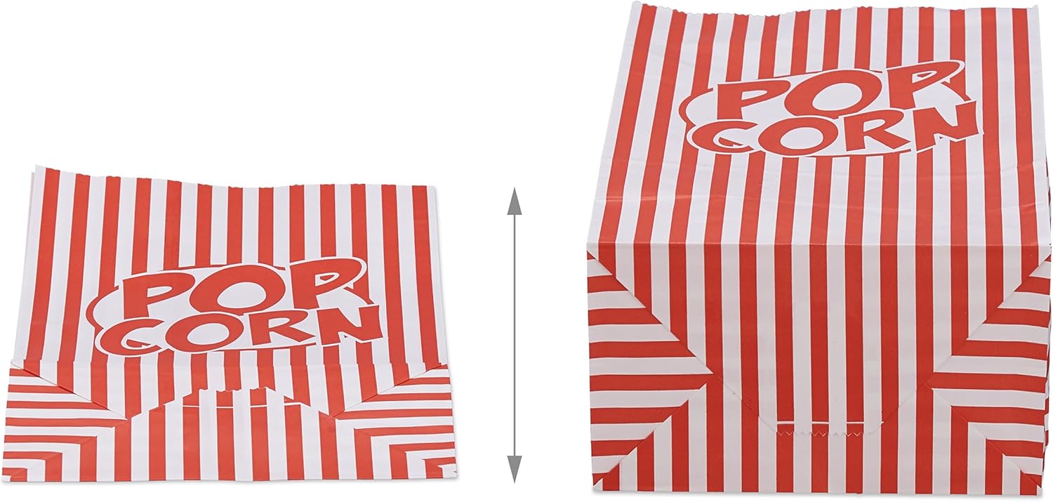 Confezione da 100 pezzi: abbastanza sacchetti per il cinema per una festa completa - niente più da mangiare in una ciotola Design: sacchetti per snack a strisce rosse e bianche con scritta "POP CORN" in design retrò americano Feeling cinematografico: godersi i popcorn in modo autentico come al cinema - tazze di popcorn per compleanni e serate di cinema Idea regalo: scatola di popcorn come regalo adatto per gli appassionati di cinema - regalare buoni cinema in modo originale Nozioni di base: i sacchetti pieghevoli per popcorn sono realizzati in carta robusta - Dimensioni ciascuno AxLxP: ca. 26×13×8 cm