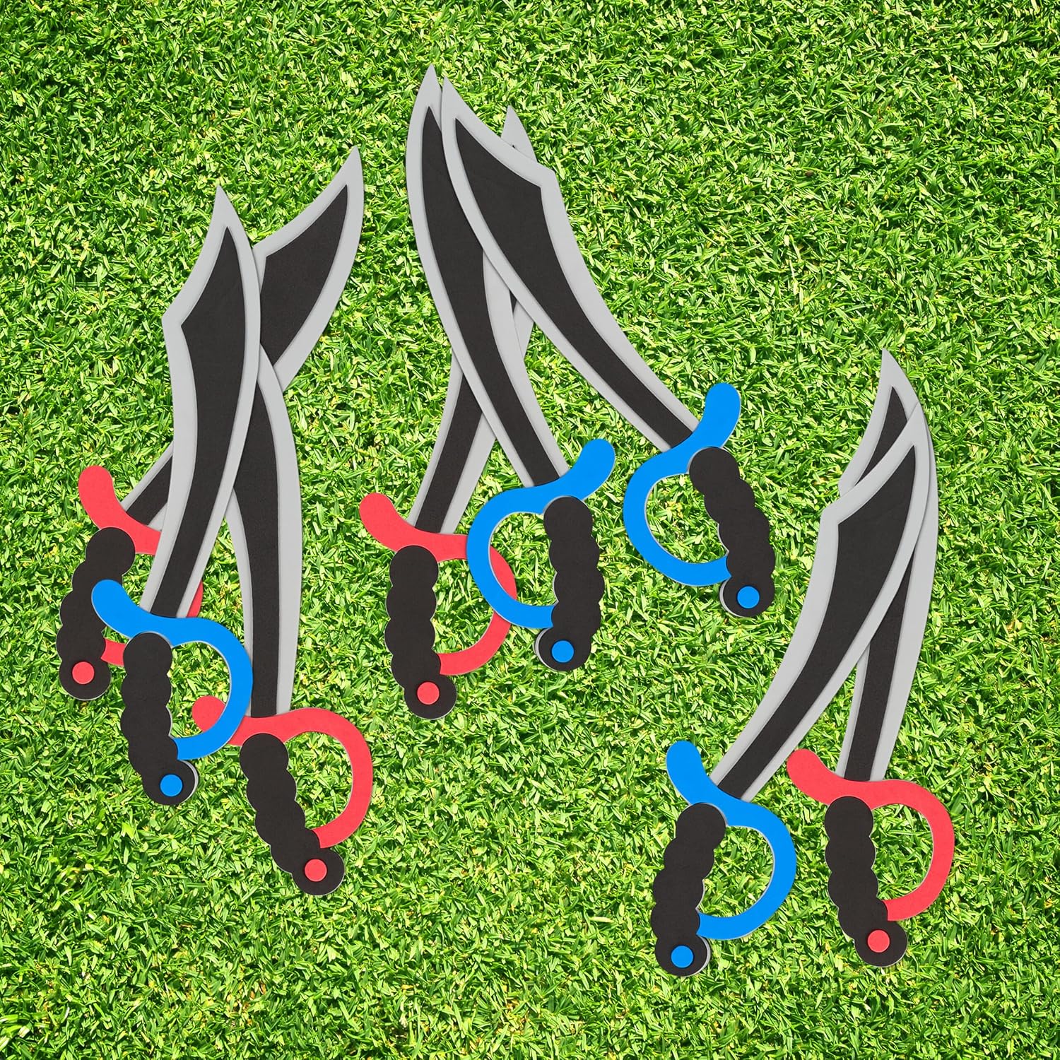 Ahoi: set da 8 spade giocattolo - accessori pirata per costumi da corsaro per bambini e bambine Versatile: sciabole da pirata ideali per feste a tema, compleanni di bambini, carnevale o Halloween Non tagliente: spada giocattolo in gommapiuma con angoli arrotondati - in spugna estremamente sicura Decorativo: spade per bambini ideali anche per decorare il tavolo o le pareti per delle feste a tema Dettagli: sciabola L: 41 cm – spada gioccatolo con impugnatura rossa e blu - dai 3 anni in su