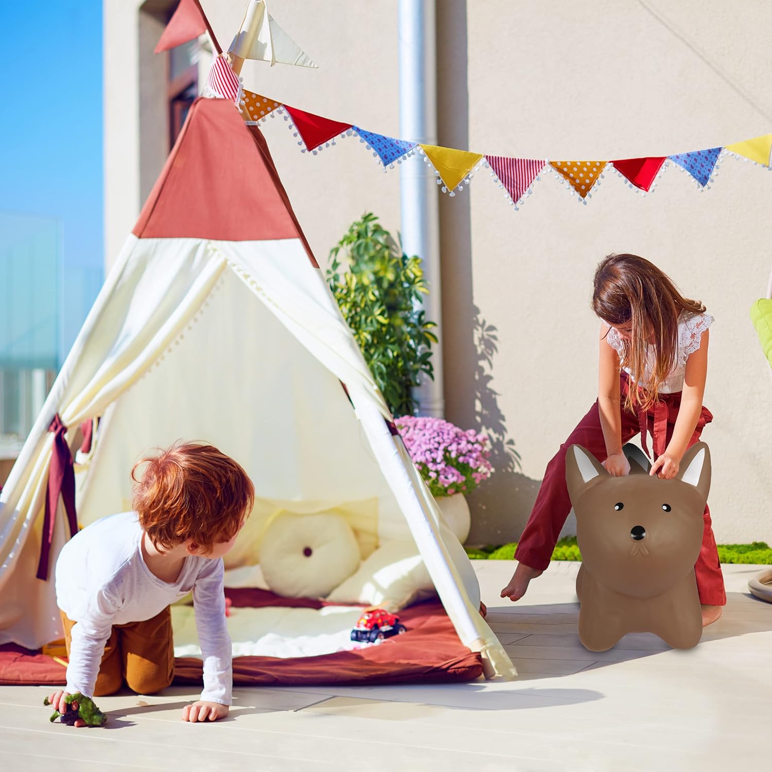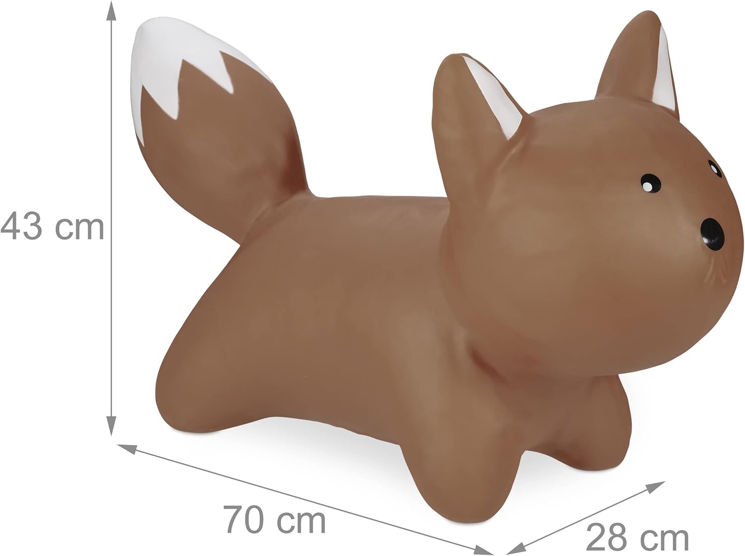 Grazioso: divertente giocattolo gonfiabile a forma di volpe - adatto ai bambini a partire dai 3 anni Per bambini: animale cavalcabile - fino a 50 kg - per l' equilibrio e la coordinazione degli arti Per interni ed esterni: divertimento assicurato in casa e in giardino - altezza seduta: 24 cm ca. Fantastica idea regalo: giocattolo gonfiabile ideale per bimbe e bimbi - pompa manuale inclusa Dettagli: misure complessive giocattolo H x L x P: 43 x 28 x 70 cm ca. - plastica PVC - BPA-free