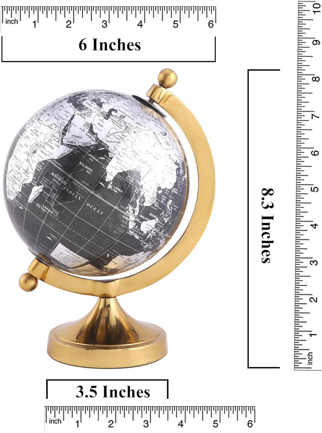 Globo decorativo unico: il nostro mappamondo decorativo per la scrivania è una decorazione unica e attraente che aggiunge stile a qualsiasi scrivania o spazio di lavoro. Mappamondo dal design moderno: con un design moderno e contemporaneo, questo mappamondo si adatta a una varietà di stili di arredamento e aggiunge un tocco di raffinatezza a qualsiasi stanza. Globo di dimensioni perfette: misura 5 pollici di diametro, questo globo è della dimensione perfetta per sedersi su una scrivania o uno scaffale senza occupare troppo spazio. Costruzione durevole: realizzato con materiali di alta qualità, questo mappamondo da scrivania decorativo è costruito per durare e resistere all'usura quotidiana. OTTIMO UTILIZZO PER REGALARE UN GLOBO: Che si tratti di un collega, capo o amico, questo globo decorativo da scrivania è un ottimo regalo per chiunque ami viaggiare o apprezzi oggetti di arredamento unici.