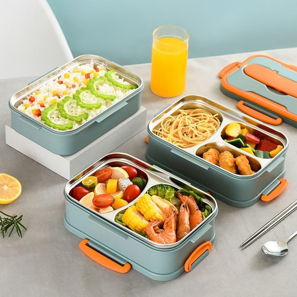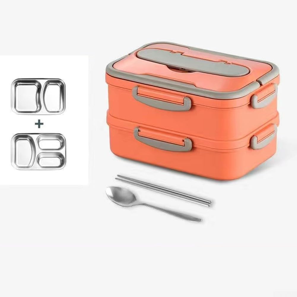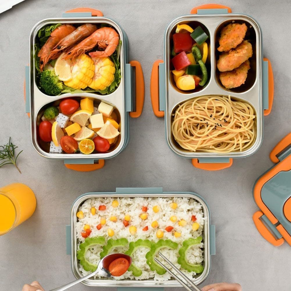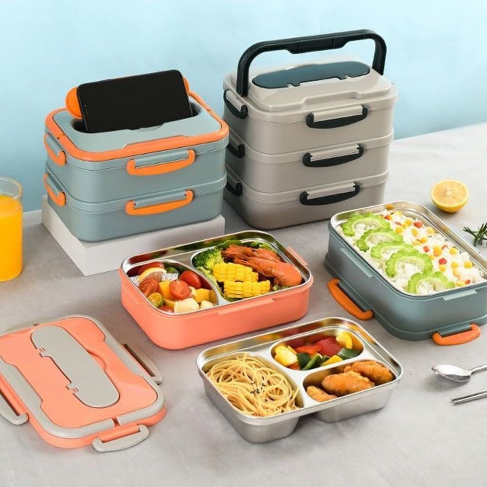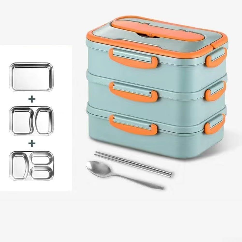 Grande capienza: il nostro portapranzo in acciaio inossidabile è disponibile in tre diverse dimensioni: strato singolo con tre scomparti e una capacità totale di 1000 ml, doppio strato con tre scomparti e doppi scomparti e una capacità totale di 2100 ml, e tre strati con tre scomparti, doppi scomparti e scomparti singoli e una capacità totale di 3300 ml. Design intimo: il serbatoio interno del nostro contenitore per il pranzo è realizzato in acciaio inossidabile 304, mentre il fondo e il guscio esterno sono realizzati in robusto materiale PP. Presenta un design antiscivolo e stabile. Inoltre, forniamo un paio di bacchette e un cucchiaio, che possono essere comodamente conservati nella scatola superiore, risparmiando tempo e fatica. Contenitore per il pranzo a prova di perdite: progettato con guarnizioni in silicone e fibbie di sicurezza, il nostro portapranzo è completamente a prova di perdite. Puoi stare certo che il tuo cibo rimarrà intatto senza fuoriuscite o perdite. Adatto a microonde, lavastoviglie e frigorifero: il nostro portapranzo è adatto per l'uso nel microonde per riscaldare facilmente il cibo. In assenza di un forno a microonde, è possibile utilizzare acqua calda per riscaldare il portapranzo. Il coperchio può essere rimosso per una facile pulizia in lavastoviglie. Puoi anche conservare gli avanzi in frigorifero per un uso successivo. Stili diversi: offriamo una varietà di stili per il nostro portapranzo, tra cui opzioni a singolo strato, doppio strato e tre strati. Inoltre, puoi scegliere tra tre colori accattivanti: grigio, arancione e blu, che ti consentono di selezionare in base alle tue preferenze personali.
