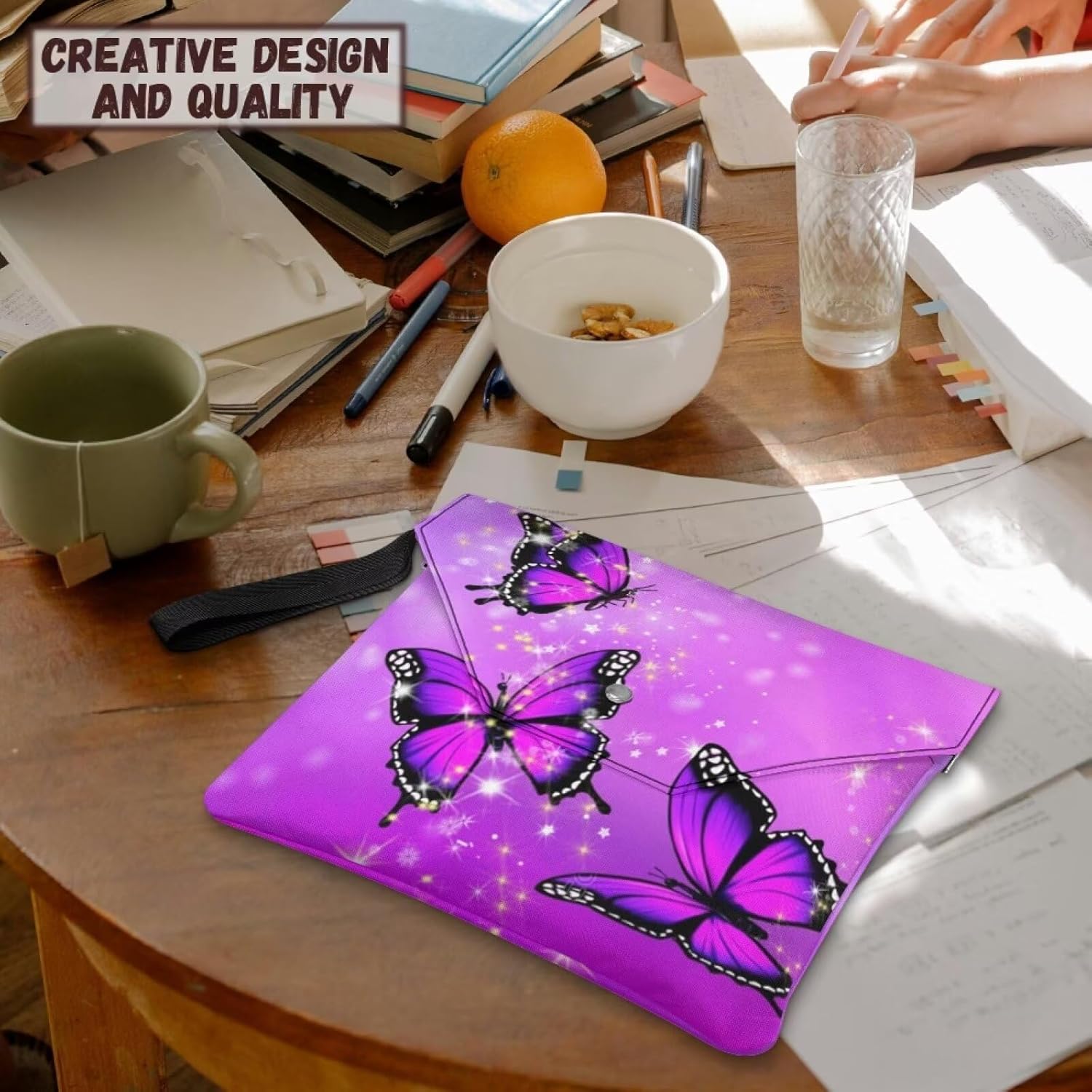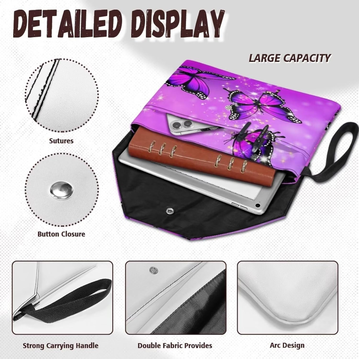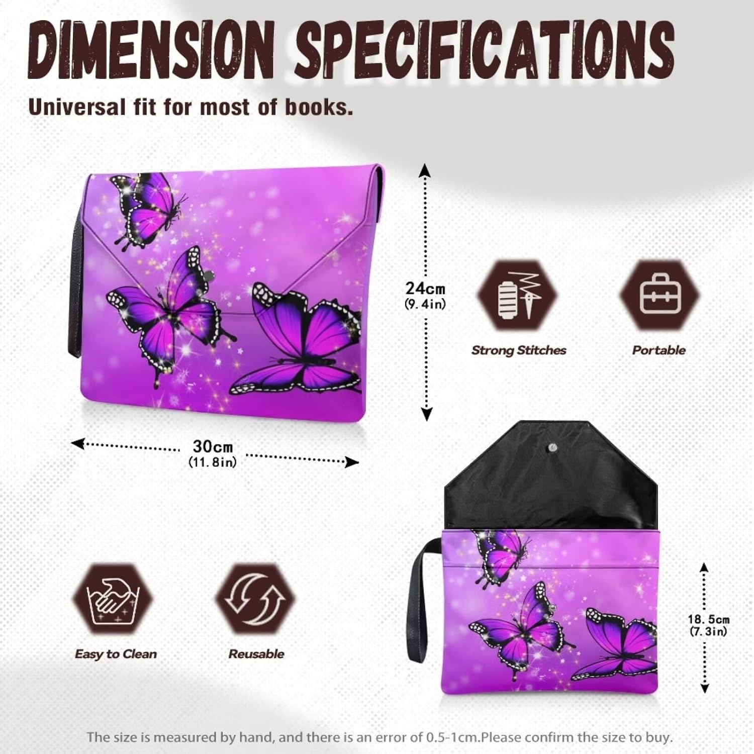 Protezione per libri: copertine per libri in poliestere di qualità, lavabili e riutilizzabili, leggere, resistenti, facili da usare e pulire. Proteggi i tuoi quaderni con copertina rigida da graffi o schizzi occasionali o pioggia leggera. Mantieni i libri puliti, mantieni tutto organizzato e ben protetto. Design con copertine per libri: 30 x 24 cm, chiusura a bottone, cordino da polso portatile, ha una tasca extra, per un totale di 2 tasche. Grande capacità per ospitare più libri, articoli di cancelleria, tablet, telefono, occhiali, segnalibri, cuffie, carte, appunti, portafogli, penne, ecc. Organizer multiuso: può essere utilizzato come copertina per libri, porta bibbia, giornale, copertina per libri, borsa per documenti, valigetta, borsa per cosmetici, piccola custodia da viaggio, mini custodia per tablet, borsa per libri di studio biblico, ecc. Funzione: quando si desidera andare a scuola, in biblioteca, in ufficio, all'aperto e in altri luoghi per studiare, leggere o lavorare, può svolgere un ruolo nella protezione dei libri, è anche comodo per trasportare più oggetti contemporaneamente, aiuta anche a individuare rapidamente il libro in molti libri. Un buon regalo per amici, insegnanti, studenti, amanti dei libri, lavoratori universitari. Regalo perfetto: può essere un regalo perfetto per compleanno, festa della mamma, festa del papà, Natale, laurea, San Valentino, laurea, festa dei bambini, regalo del Ringraziamento, regalo di ritorno a scuola, regalo di Pasqua, regalo di Halloween, ecc.