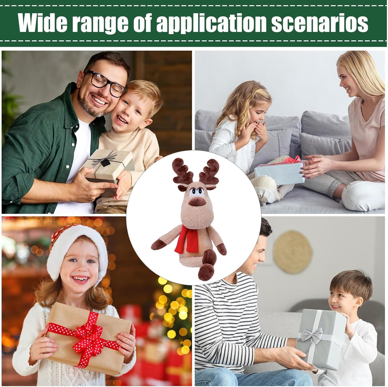 Fascino Natalizio della Renna: La renna di Natale si distingue visivamente e infonde un senso di sicurezza nei bambini grazie al suo design accogliente, creando un'atmosfera incantevole per le feste di Natale o le serate invernali trascorse in famiglia. Perfetta come decorazione renna natalizia per abbellire la casa durante le festività. Accento Natalizio Significativo: Le decorazioni di Natale a tema renna offrono un'estetica classica della renna completata da dettagli di sciarpa rossa, assicurando che lo spazio sia invitante e festoso mentre si accolgono ospiti in questo periodo speciale. La renna decorativa aggiunge un tocco di calore e allegria, ideale per rendere le celebrazioni più memorabili e coinvolgenti per tutti. Arricchisci l'atmosfera : Questo renna di Natale unisce la funzione di peluche confortante a quella di decorazione, arricchendo con adattabilità ogni ambiente per creare momenti indimenticabili in case, eventi e raduni stagionali, aggiungendo un tocco di allegria in più. Renna in Peluche per Tutte le Età: Prodotta con tessuto in peluche soffice e materiali di riempimento ecologici, questa renna natalizia fornisce un tocco gentile sulla pelle, migliorando l'atmosfera e il relax personale. È adatta per occasioni speciali come la mattina di Natale o le serate tranquille al , offrendo comfort e gioia. La sua morbidezza la rende un regalo per ogni età, contribuendo a creare ricordi indimenticabili con stile e sicurezza. Regalo Natalizio Incantevole: La renna di Natale offre un'opzione regalo ideale per bambini e amici, portando calore e fascino festivo in qualsiasi ambiente, arricchendo le celebrazioni e agendo come un gesto premuroso durante natalizie o scambi amichevoli per rafforzare i legami.