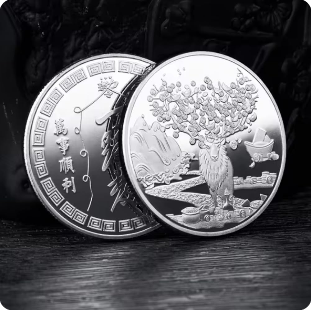 Renna per buona fortuna mascotte monete d'argento collezione da collezione souvenir cinese per decorazione Feng Shui ornamento in metallo da tavolo