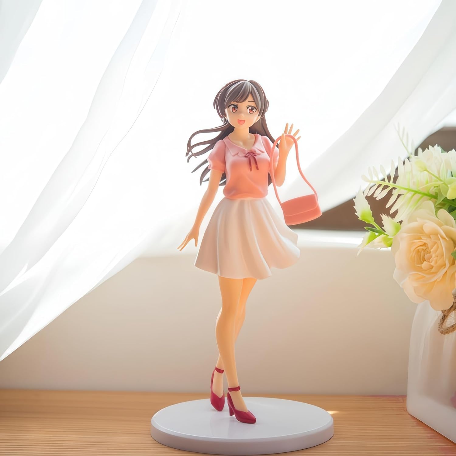 Autenticità del top rosa e della gonna bianca di Chizuru Mizuhara: Ricrea il fresco top rosa di Chizuru Mizuhara e il look della gonna bianca di Rent Girlfriend. L'abbinamento dei colori, il design semplice e la vestibilità si abbinano alla rappresentazione del personaggio, catturando perfettamente il suo personaggio vivace ma elegante amato dai fan. Posizione naturale in piedi: presenta una postura rilassata e naturale in piedi, distinta dalle pose esagerate o dinamiche. La posizione evidenzia la silhouette pulita dell'outfit, esaltando l'atmosfera fresca del top rosa e della gonna bianca e adattandosi agli scenari di visualizzazione quotidiani. Scala da 18 cm per equilibrio e dettaglio: la dimensione di 18 cm bilancia l'adattabilità dello spazio e la presentazione dei dettagli. È abbastanza grande da mostrare dettagli raffinati come texture di abbigliamento, espressioni facciali e linee dei capelli, mentre si adatta facilmente su piccoli scaffali, scrivanie o custodie per computer. Materiale PVC resistente: realizzato in robusto PVC resistente al lavaggio. Conserva il tono vivace del top rosa e il colore puro della gonna bianca, mantenendo la forma liscia della figura e resistendo a piccoli graffi o sbiadimento per una collezione a lungo termine. Decorazione e valore regalo: serve come un fresco ornamento personaggio anime. È un prezioso oggetto da collezione per i fan di Rent Girlfriend e Chizuru Mizuhara, e ideale per regali di festival/compleanno.