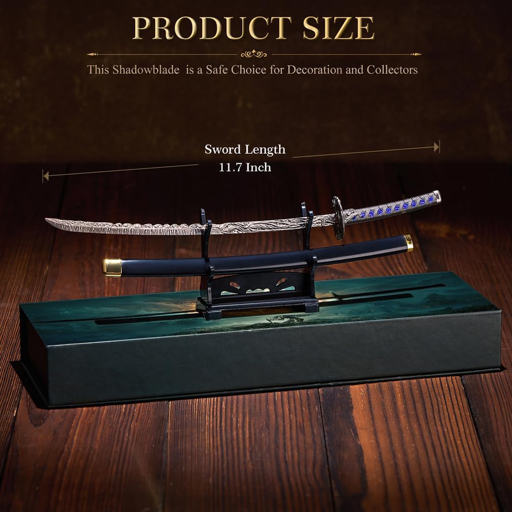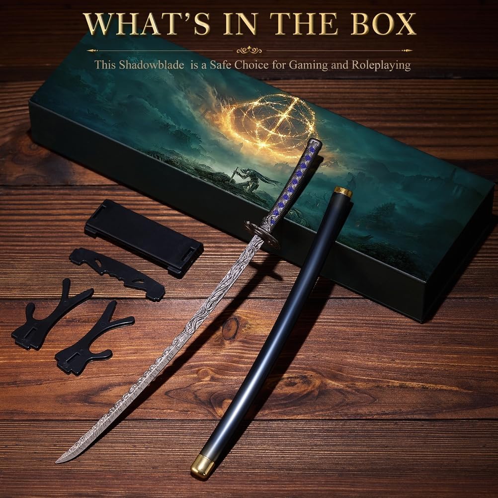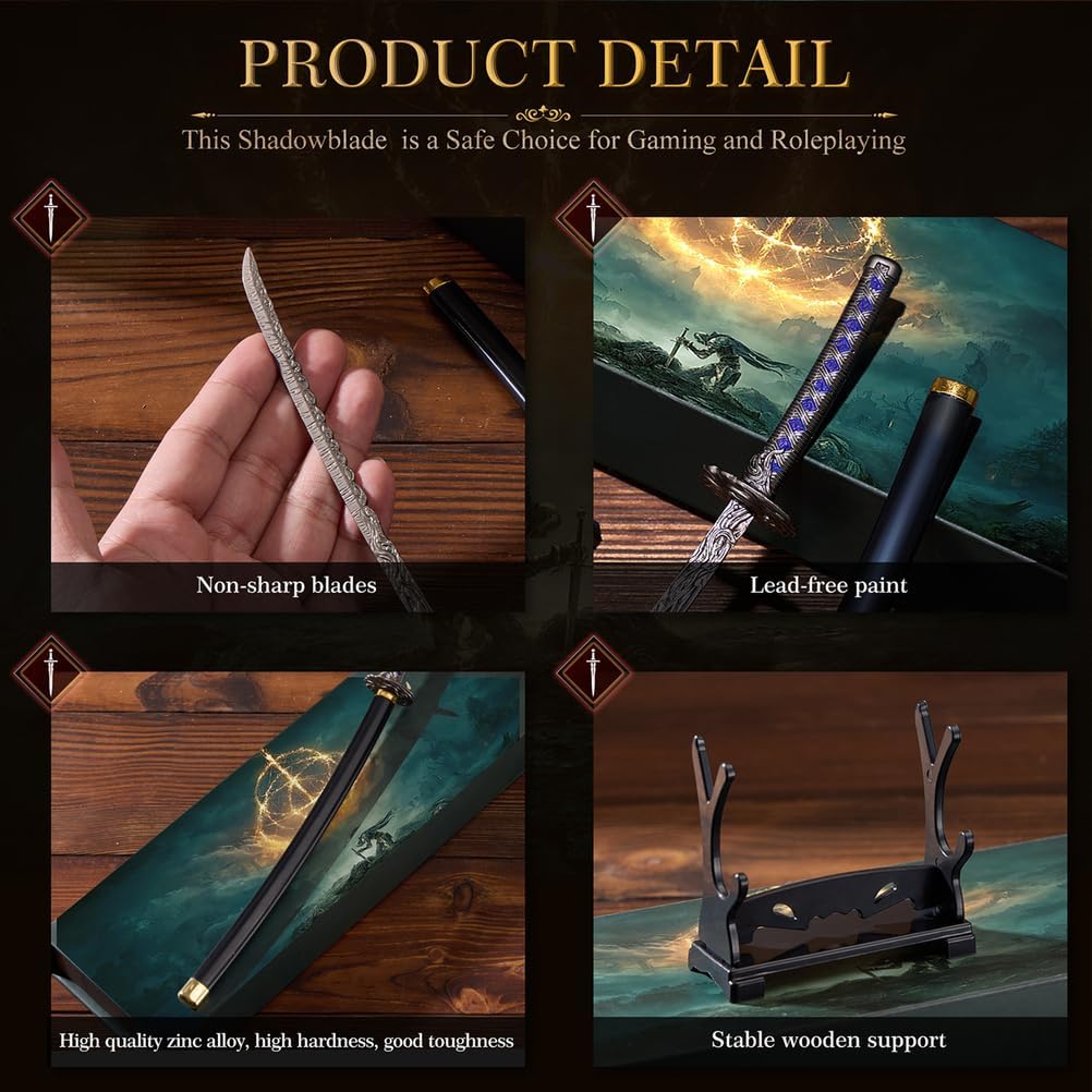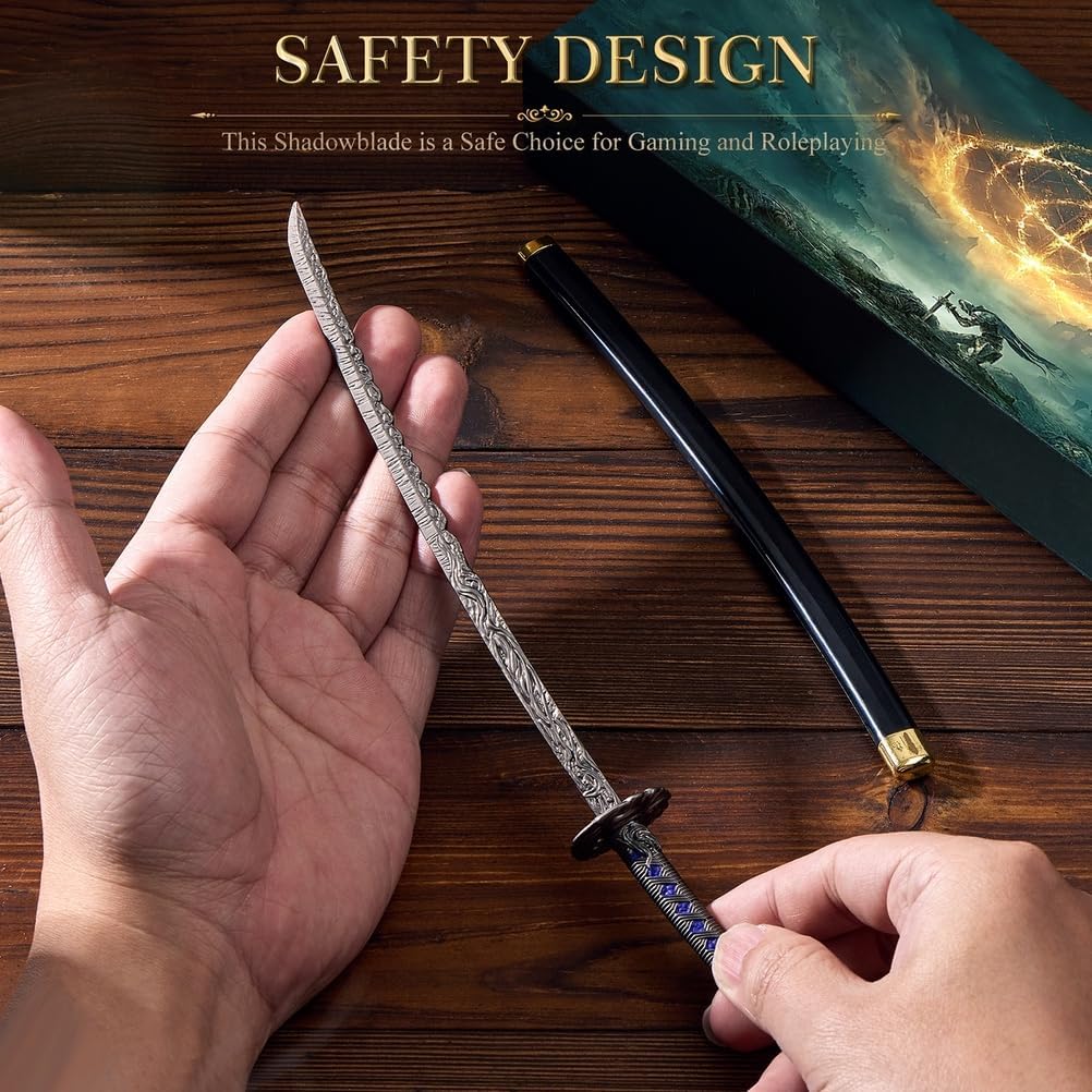 Elden Ring Shadowblade: entra nel misterioso mondo di Elden Ring con Shadowblade, una replica magistralmente realizzata della leggendaria Starlight Shadow. Progettata per i fan dell'universo dei prodotti Soulslike, questa spada decorativa in metallo porta il brivido delle terre di mezzo direttamente sulla tua scrivania o vetrina. Lavorazione squisita e design autentico: ispirata a spade leggendarie come la lama blasfema e lo spadone della Luna Oscura, ogni dettaglio è stato accuratamente scolpito. La sua autentica forma a mini-spada la rende ideale come fantastica katana o arma giocattolo, o come elemento centrale per collezioni di action figure anime. Questa non è solo una spada; è un pezzo di merchandising di gioco progettato per impressionare sia i fan occasionali che i veri collezionisti di giocattoli. Display e decorazione versatili: con la sua elegante estetica Samurai Cool Knives, questa replica di Shadowblade è perfetta come ornamento per la scrivania, come decorazione per la scrivania della sala giochi o come aggiunta accattivante all'arredamento della tua casa. Leggero ma robusto, si adatta perfettamente a qualsiasi ambiente, dalle vetrine alle stanze a tema, offrendo stile e sostanza. Il regalo perfetto per fan e collezionisti: cerchi il regalo perfetto per un amante dei giochi? La spada Shadowblade è una scelta straordinaria. Ideale per gli appassionati di Elden Ring, i fan degli anime o chiunque apprezzi le spade decorative in metallo finemente realizzate, combina utilità pratica con valore da collezione. Un regalo unico che funge anche da tagliacarte decorativo o da inizio di conversazione per gli appassionati di giochi. Celebra l'eredità delle iconiche armi da gioco: alla pari della Holy Moonlight Sword e della Blasphemous Blade, questa Shadowblade Mini Sword cattura l'arte dei leggendari oggetti di scena. Che sia per la decorazione della stanza, per il cosplay o come oggetto da collezione, porta l'antico spirito dei Samurai Cool Knives nel mondo moderno e soddisfa ogni fantasia di gioco