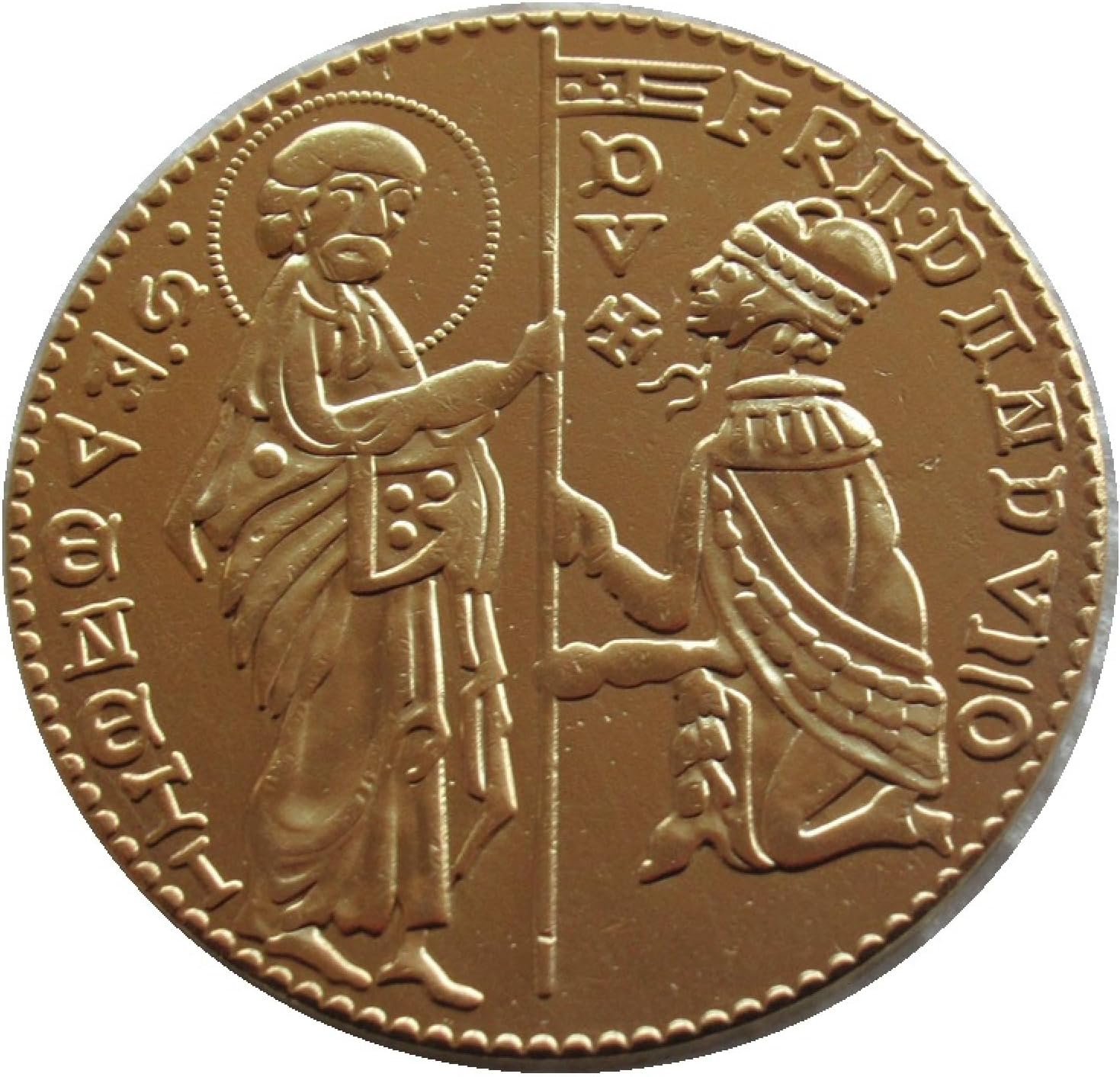 【Materiale】: Realizzato con anima in lega di zinco di alta qualità, galvanizzato, ad alta resistenza, resistente all'usura, antiruggine e durevole. 【Caratteristiche】: La fattura di questa moneta commemorativa è squisita e il design antico ha un tocco retrò. L'alta qualità artigianale le conferisce un aspetto che ricorda molti pezzi d'antiquariato del passato. 【Collezione senza pari】: la moneta da collezione può essere splendidamente collocata in casa, in ufficio, sulla scrivania del computer, in soggiorno, in camera da letto o su uno scaffale, come un'opera d'arte unica. Puoi anche portarla con te in borsa, in tasca, nello zaino, e la sua fede ti ispirerà e ti porterà fortuna sempre e ovunque. 【Usi multipli】: Non sono solo regali commemorativi, ma anche fantastici regali per chi ama collezionare monete. Possono anche essere usati come regali per feste, regali aziendali, decorazioni per festival. Li adorerai quando li avrai! 【CONFEZIONE】: - 1 moneta. Le nostre monete sono tutte copie da collezione e per gioco. I motivi sulle monete sono tutti realizzati facendo riferimento a materiali storici reali. Si prega di non acquistarle come monete da collezione originali. Vendiamo queste monete replica solo per rendere la vostra collezione perfetta.