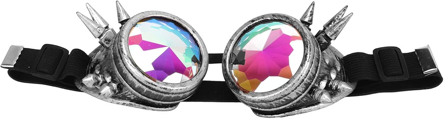 Lenti di caleidoscopio: questi occhiali rave di Halloween Kaleidoscopi hanno obiettivi di caleidoscopio che sono realizzati con squisita lavorazione e presentano un design retrò. Le lenti uniche offrono un'esperienza visiva accattivante che li fa risaltare in qualsiasi ambiente Gli occhiali di Halloween Kaleidoscopio sono progettati in stile Steampunk con una lente cristallina arcobaleno. L'aspetto fresco e bello è pieno di personalità, aggiungendo un look spigoloso e alla moda. Gli occhiali a steampunk psichedelici trippy sono dotati di un nosepiece regolabile e un design di dimensioni. Questo li rende adatti a facce sia grandi che piccole, garantendo una vestibilità comoda per tutti i chiusura. Rainbow Rave Steampunk Goggles sono dotati di una fascia elastica regolabile con fibbia che ha un'elevata elasticità che può adattarsi alla maggior parte delle forme della testa che consentono un'esperienza di usura e confortevole Luoghi applicabili: gli occhiali di caleidoscopio sono adatti per una vasta gamma di luoghi come decorazioni e feste di eventi vintage. Sono particolarmente per Halloween che aggiungono un occhio festivo e catturato
