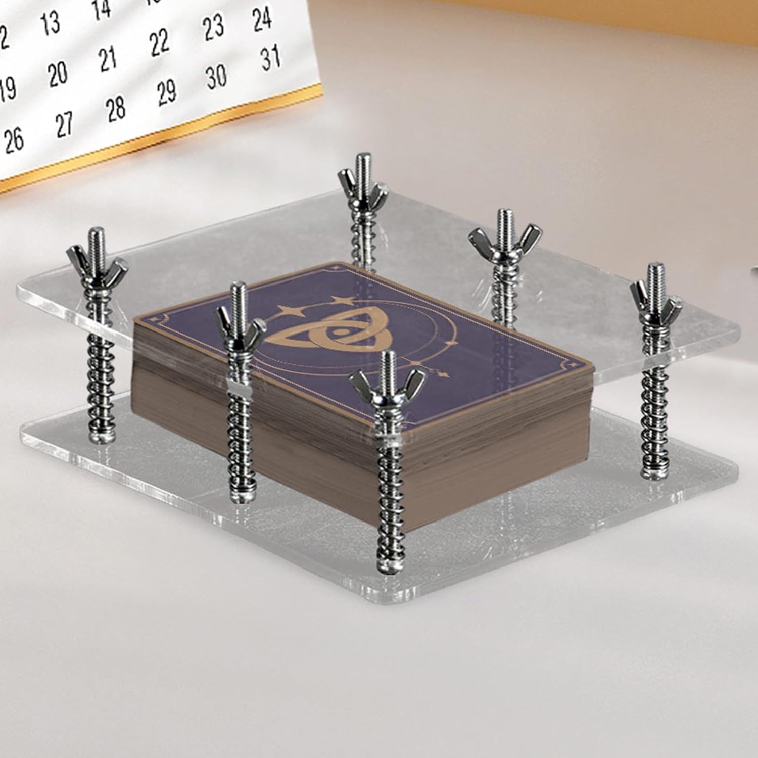 Respuratore di carte: dispositivo realizzato con materiale acrilico chiaro progettato per appiattire e ripristinare le carte deformate o piegate, per giocare a carte, carte da collezione, carte da gioco o carte di carta, aiutando a prolungare la vita e mantenere la tua collezione di carte Acrilico chiaro: strumento di pressione con bordi lisci e costruzioni robuste, consente a una distribuzione uniforme della pressione di correggere la deformazione delle carte senza , facile da usare e pulire, ideale per giocatori, collezionisti e hobbisti che cercano soluzioni per la cura delle carte Pressing Cards: dispositivo compatibile con varie dimensioni delle carte, tra cui poker, trading, carte da gioco da tavolo, fornendo appiattimento e protezione uniformi, leggero e portatile per un comodo spazio di archiviazione e viaggi, per la casa o gli eventi Correzione delle carte: strumento progettato per proteggere e preservare le carte da gioco prevenendo ulteriormente la flessione o il curling, migliora la durata e l'usabilità delle carte, adatti a giocatori casuali, professionisti e collezionisti alla ricerca di la qualità delle carte Carte di gioco: protettore e contenitore che combinano funzioni di archiviazione e manutenzione delle carte, mantiene le carte organizzate e sicure da usura, , umidità e polvere, rendendolo un accessorio prezioso per serate, tornei e collezionisti di gioco