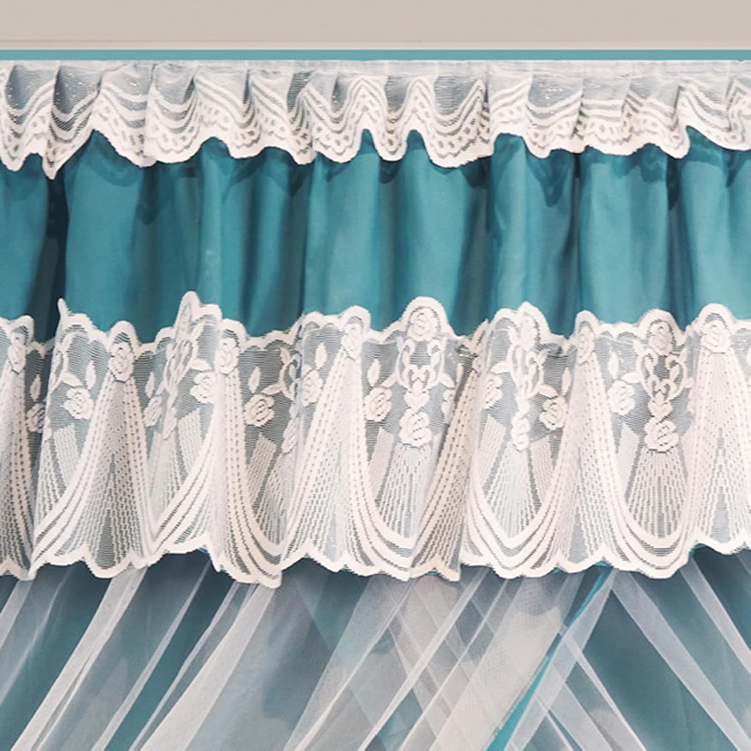 - La tenda a doppio strato è dotata di quattro tende a baldacchino angolari per tenere lontani i piccoli insetti. - Realizzata con porte in rete e una sottile tenda di garza traspirante, la tenda è impermeabile a zanzare e tarme. Le staffe in acciaio inossidabile forniscono un solido supporto alla struttura, impedendone la flessione durante l'uso. - Il bordo in pizzo della tenda da letto Princessen con volant a 4 angoli crea un effetto drappeggiato che si adatta a vari stili di casa. - Grazie al design con gancio silenzioso, le tende a rete per letto Canopy possono essere facilmente aperte e chiuse con una sola mano.