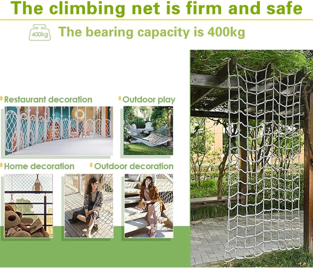 Ecco la nostra rete da arrampicata, con un diametro della corda di 14 mm e una dimensione della maglia di 15 x 15 cm. Disponibile in varie dimensioni, questa rete versatile può essere personalizzata per soddisfare le vostre esigenze specifiche. Perfetto per migliorare le aree gioco all'aperto o le attività di arrampicata, è progettato per la sicurezza e l'affidabilità. Esplora le nostre opzioni oggi! Rete da arrampicata di alta qualità: realizzata in fibra di poliammide, questa rete da arrampicata offre resistenza e affidabilità costanti. La superficie in rete è altamente resistente agli urti e supporta carichi pesanti. Realizzato con tessitura a più fili, garantisce una maggiore ilità, rendendolo adatto a varie attività di arrampicata. Perfetto per avventure all'aria aperta e aree gioco sicure. Promemoria calda: dopo la produzione della rete in corda, può rimanere un leggero odore, che si dissiperà dopo l'aerazione e l'asciugatura. La rete in fibra di poliammide può diventare grigia dopo l'esposizione al sole, il che è normale. Goditi la versatilità e la flessibilità di questo prodotto versatile, perfetto per varie attività e applicazioni all'aperto. Multifunktionales Dekorationsnetz: Kann im Innenbereich als Dekoration, Deckennetz, Fotowandnetz, Wäschetrocknernetz und Raumteiler verwendet werden; kann im Außenbereich für Vergnügungsparks, öffentliche Einrichtungen, Landschaftszääch une und Hängee Brückenschutz verwendet werden Warme Erinnerung: Nach der Herstellung des Seilnetzes kann ein Geruch zurückbleiben, der nach dem Lüften und Trocknen verschwindet. Das Seilnetz aus Polyamidfaser wird nach dem Sonnenbaden grau, era normale ist