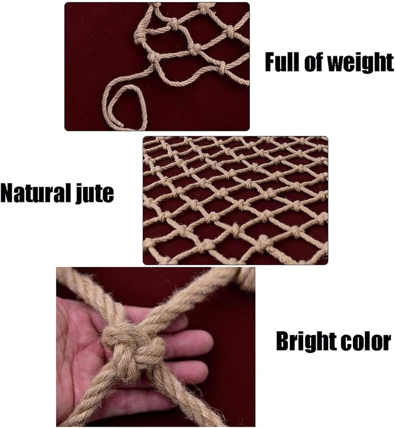 SPECIFICHE RETE DA ARRAMPICATA PER BAMBINI: Diametro corda: 10 mm; Dimensione maglia: 10 cm; Capacità di carico: 300 kg (661 libbre). Il bordo della rete è rinforzato, la forza di trazione è forte, abbastanza forte da garantire la sicurezza del tuo bambino. Disponiamo di reti in corda di qualsiasi altra dimensione (diametro della corda, dimensione della maglia, lunghezza * larghezza) e supportiamo la personalizzazione. Se avete domande o richieste, contattateci. MATERIALI DELLA RETE DI SICUREZZA: La rete da arrampicata in corda di canapa quadrata è realizzata in materiale di canapa ad alta resistenza, particolarmente adatto per l'arrampicata e la protezione. Materie prime accuratamente selezionate, tessute a mano dall'artigianato ereditato; Tecnologia di tessitura professionale, resistente all'usura e al sole, forte, robusta e durevole. RETE DI PROTEZIONE PER BAMBINI: Secondo i nostri test, la rete in corda anticaduta non è facile da rompere e può proteggere i tuoi bambini o animali domestici dalla ringhiera delle scale. Puoi usarlo per scale, balconi, finestre, ringhiere, gabbie per animali domestici e all'aperto per cortili, recinzioni del giardino, asili nido, per proteggere il tuo bambino, piante, pollame, ecc. Utilizzato anche per i camion per evitare la caduta del carico. RETE DA ARRAMPICATA: offri ai tuoi bambini più divertimento. Adatto a strutture per arrampicata, altalene e percorsi a ostacoli. CONSIGLIO PER LA SICUREZZA: controllare regolarmente la rete di sicurezza per i rischi per la sicurezza causati da vari fattori esterni o umani e sostituirla in tempo per garantire la sicurezza personale del bambino.
