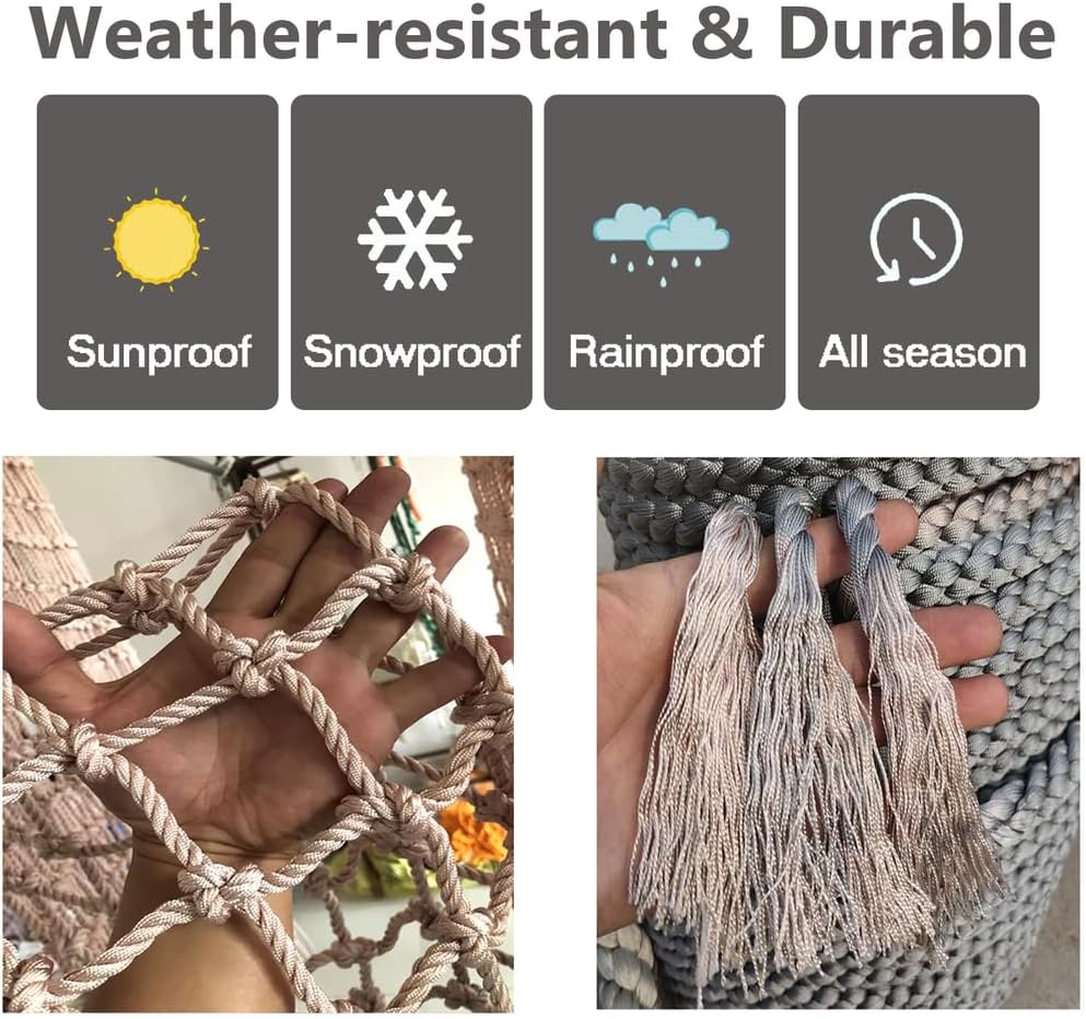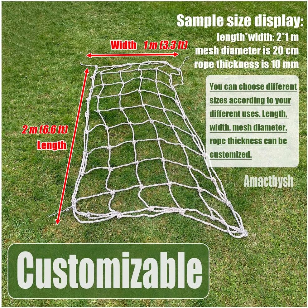 Rete in corda multiuso per arrampicata: questa robusta rete da arrampicata è ideale per le impalcature del parco giochi, offrendo a bambini e adulti un'esperienza di arrampicata sicura e divertente. Questa rete versatile incoraggia l'attività fisica e il gioco all'aperto e migliora le attrezzature del parco giochi. Vivi ore di divertimento in arrampicata con questa aggiunta essenziale al tuo spazio all'aperto. Migliora le tue esperienze all'aria aperta con la nostra versatile rete da carico da arrampicata. Con una distanza tra le griglie di 20 cm e un robusto diametro della corda di 10 mm, questa rete può essere regolata da 1,0 a 10,2 metri di lunghezza e 1,0 metri di larghezza. È adatto a bambini e adulti e offre sicurezza affidabile durante l'arrampicata e il gioco. Perfetto per parchi giochi, percorsi a ostacoli e varie attività all'aperto. Personalizzazione: scegli tra diverse dimensioni per la tua rete di corda, inclusi spessore della corda, diametro della maglia e lunghezza*larghezza. Perfetta per l'uso all'aperto, questa rete versatile offre sicurezza e supporto per i tuoi progetti. Ideale per giardinaggio, arrampicata e attività ricreative. Il nostro design robusto garantisce prestazioni e affidabilità di lunga durata. Nodi stabili della corda della rete da arrampicata: intrecciati a mano, con nodi più belli, più forti e più sicuri sulla connessione in rete, in modo da poter arrampicarsi meglio senza scivolare e godersi il divertimento dell'arrampicata. Personalizzazione: tutte le altre dimensioni della rete in corda, come spessore della corda, dimensione della maglia, lunghezza*larghezza, sono disponibili tra cui scegliere