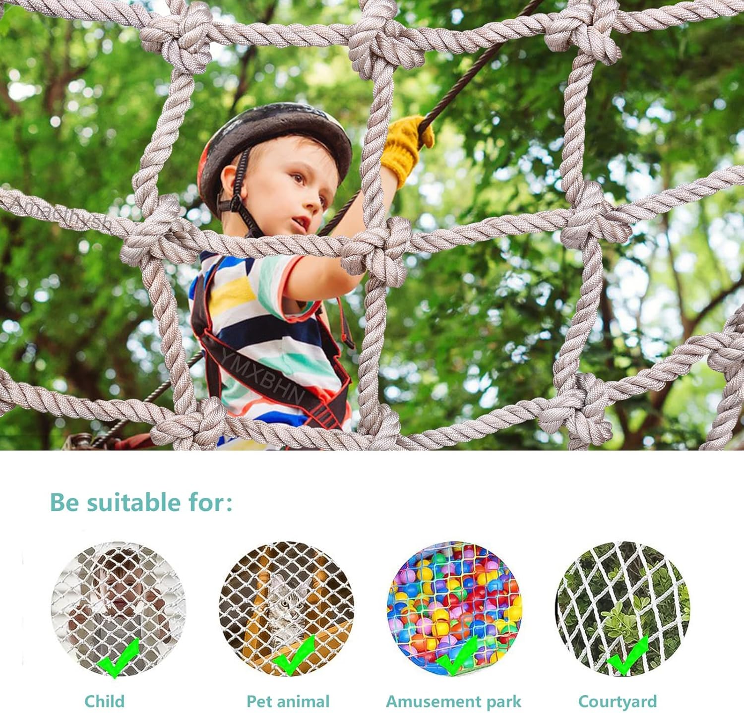 Specifiche della rete in corda: diametro della corda: 14 mm (0,55 pollici), maglia della rete in corda: 20x20 cm (7,9x7,9 pollici); Abbiamo una varietà di dimensioni tra cui scegliere. È possibile personalizzare le reti da arrampicata in altre dimensioni e specifiche. Materiale della rete in corda: la rete da arrampicata è realizzata a mano in corda in fibra di poliammide. La forza è uniforme e non facile da staccare. La superficie in rete è altamente resistente agli urti e portante. È realizzata in treccia multifilo ed è resistente all'usura Protezione di sicurezza: la rete in corda è adatta per balconi, scale, corridoi, cortili, scuole, palestre, campi da gioco e club sportivi per impedire la caduta di persone o oggetti e garantire la sicurezza di animali domestici e persone Rete decorativa multifunzionale: può essere utilizzata all'interno come decorazione, rete per soffitto, rete per pareti fotografiche, rete per asciugatrice e divisorio; può essere utilizzato all'aperto per parchi di divertimento, strutture pubbliche, recinzioni paesaggistiche e protezione di ponti sospesi. Promemoria caldo: dopo aver realizzato la rete di corda, potrebbe esserci un odore che scomparirà dopo la ventilazione e l'asciugatura. La rete in corda di fibra di poliammide diventa grigia dopo aver preso il sole, il che è normale