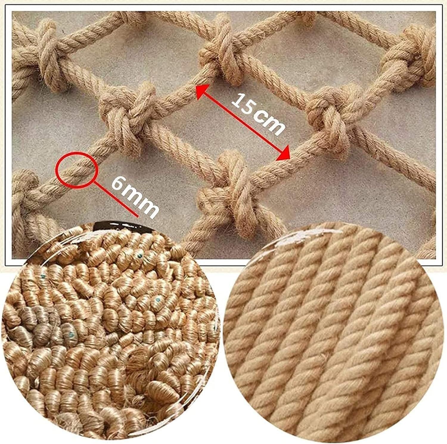 ◆ SPECIFICHE DELLA RETE DA ARRAMPICATA for BAMBINI: Diametro della corda: 6 mm; Dimensione maglia: 15 cm; Capacità di carico: 100 kg (221 libbre). Il bordo della rete è rinforzato, la forza di trazione è forte, favorisce la coordinazione, l'equilibrio e la forza. Disponiamo di reti in corda di qualsiasi altra dimensione (diametro della fune, maglia, lunghezza * larghezza), personalizzazione del supporto. Se avete domande o necessità, contattateci. ◆ MATERIALI DELLA RETE DI SICUREZZA: la iuta del Bangladesh è un dono della natura. Colore brillante, fibra lunga, resistente agli agenti atmosferici, durevole, buon effetto decorativo. La rete da arrampicata quadrata in corda di canapa può essere utilizzata all'interno e all'esterno. ◆ RETE ANTI CADUTA RETE IN CORDA CARATTERISTICHE: Corda resistente e dispositivi di fissaggio robusti, quindi è molto sicura e durevole. È più resistente di qualsiasi altra corda da arrampicata for bambini che abbiamo visto. Il tuo bambino può giocare in tutta sicurezza e a proprio agio. ◆ UTILIZZA RETE DA ARRAMPICATA CON RETE IN CORDA: la rete da arrampicata for bambini fornisce un ambiente di gioco sicuro for i bambini, la rete in corda può anche prevenire efficacemente la testa dei bambini, il corpo attraverso la pista ed è robusta for le scale dei balconi interni ed esterni for garantire la sicurezza dei bambini. ◆ CONSIGLIO for LA SICUREZZA: controllare regolarmente la rete di sicurezza for eventuali rischi for la sicurezza causati da vari fattori esterni o umani e sostituirla in tempo for proteggere la sicurezza personale del bambino. Adatta a diversi scenari, più sicura e resistente
