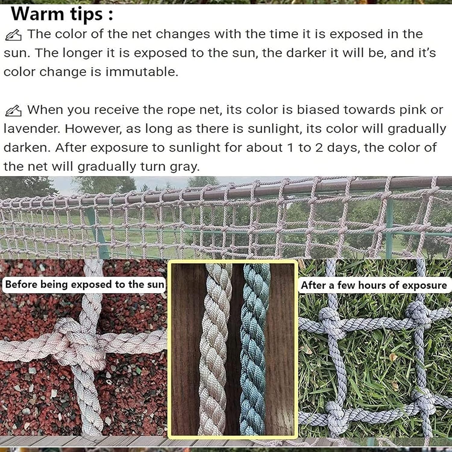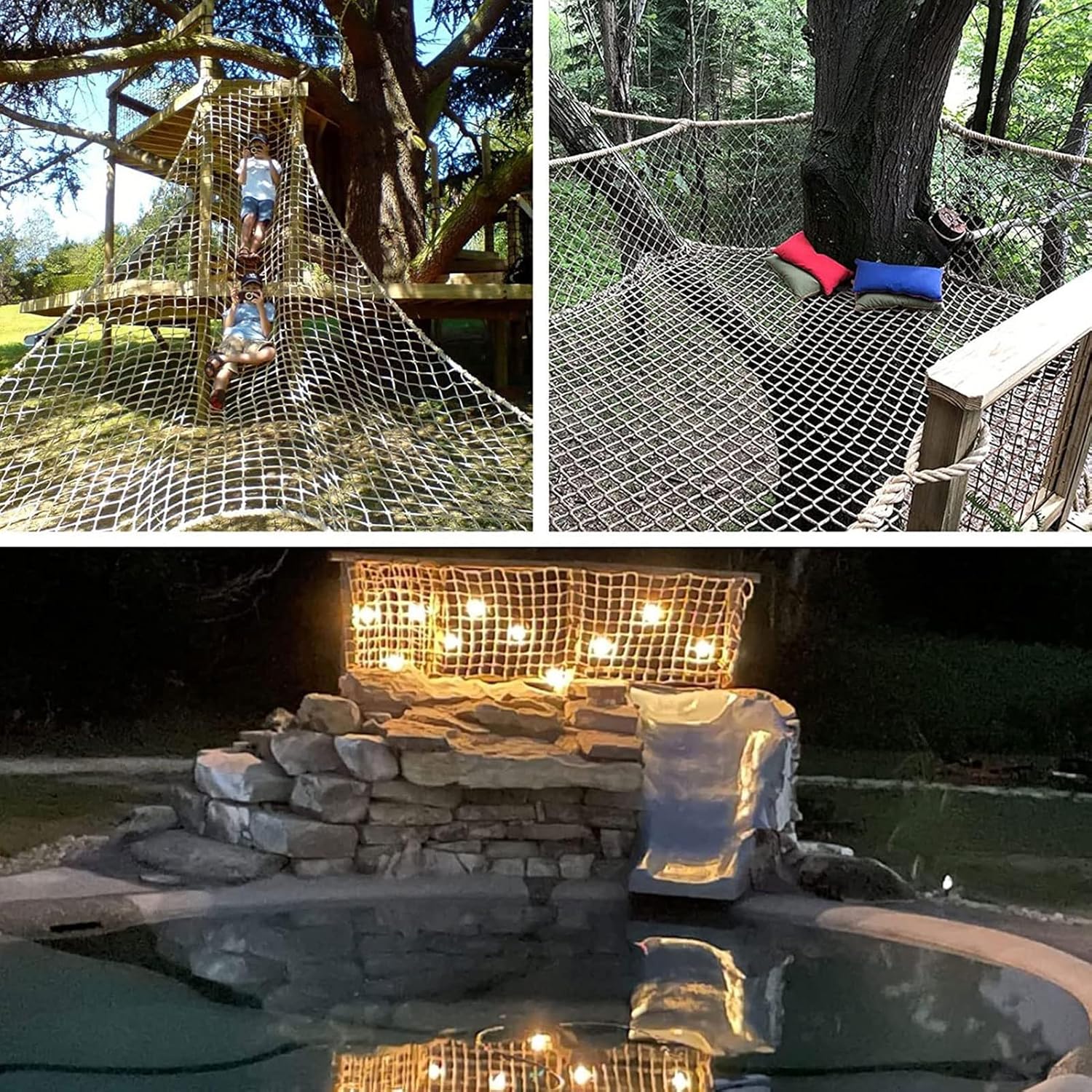 Migliora le tue avventure all'aria aperta con la nostra resistente rete da arrampicata. Caratterizzata da un robusto diametro della corda di 14 mm e una dimensione della maglia di 15 x 15 cm, questa rete versatile è perfetta per varie attività. Disponibile in diverse dimensioni per soddisfare le vostre esigenze, le nostre reti da arrampicata offrono sicurezza e divertimento per bambini e adulti. Ideale per parchi giochi, palestre e uso ricreativo. Realizzata a mano in resistente fibra di poliammide, questa rete da arrampicata offre resistenza e resilienza costanti. La superficie in rete è resistente agli urti e in grado di sostenere carichi pesanti. Con la sua tessitura multifilo, garantisce una lunga resistenza all'usura, rendendolo una scelta ideale per le attività di arrampicata e avventure all'aria aperta. Perfetto per migliorare la sicurezza e il divertimento in vari ambienti. Promemoria calda: dopo la produzione della rete in corda, può rimanere un leggero odore, che si dissiperà dopo l'aerazione e l'asciugatura. La rete in fibra di nylon può diventare grigia dopo l'esposizione al sole, il che è normale. Ideale per attività all'aperto, questa resistente e versatile rete in corda offre un eccellente supporto e sicurezza per varie applin. Goditi le tue avventure con fiducia! Multifunktionales Dekorationsnetz: Kann im Innenbereich als Dekoration, Deckennetz, Fotowandnetz, Wäschetrocknernetz und Raumteiler verwendet werden; kann im Außenbereich für Vergnügungsparks, öffentliche Einrichtungen, Landschaftszääch une und Hängee Brückenschutz verwendet werden Warme Erinnerung: Nach der Herstellung des Seilnetzes kann ein Geruch zurückbleiben, der nach dem Lüften und Trocknen verschwindet. Das Seilnetz aus Polyamidfaser wird nach dem Sonnenbaden grau, era normale ist