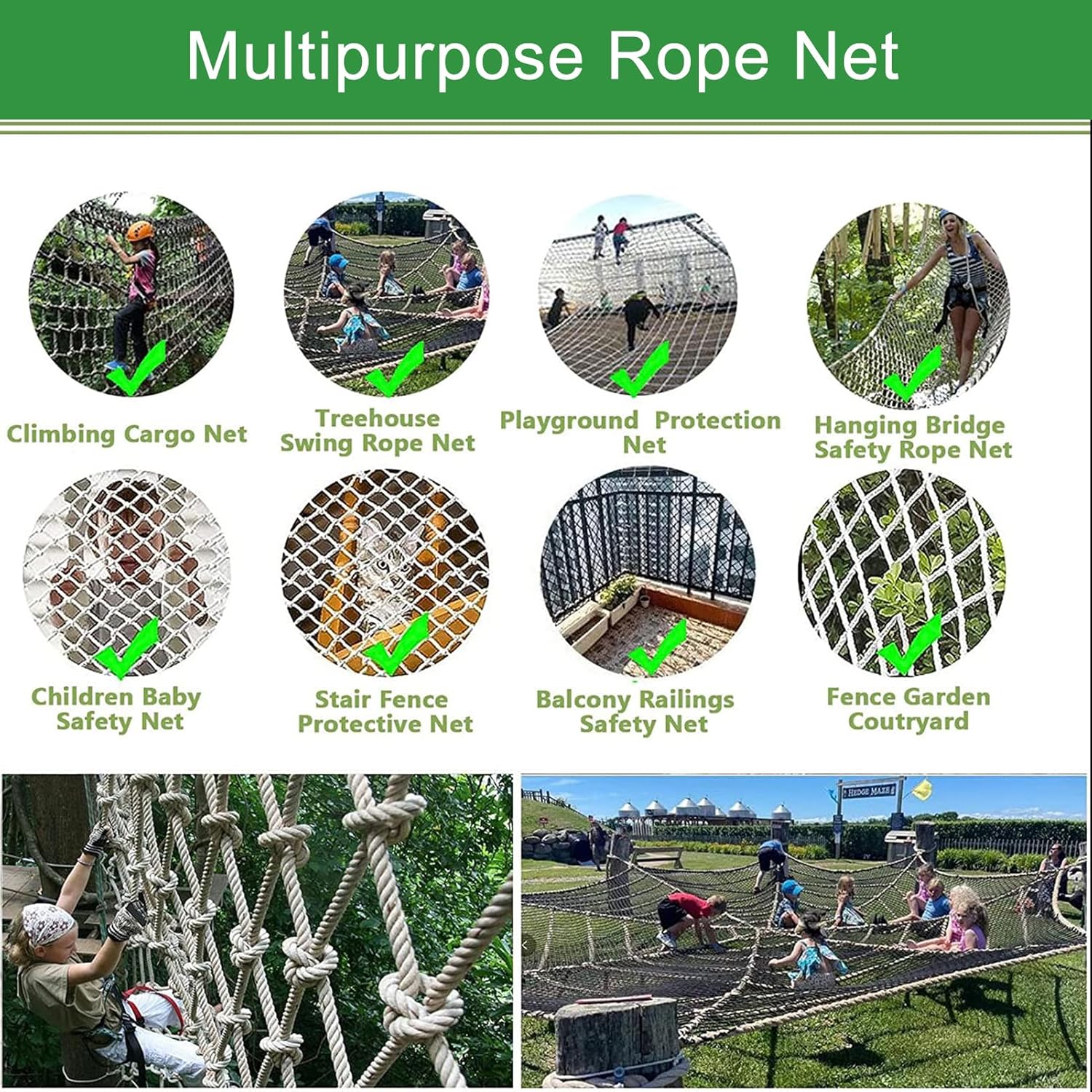 Specifiche della rete in corda: diametro della corda: 10 mm (0,4"), rete in corda: 20 x 20 cm (8 x 8"); Abbiamo una varietà di dimensioni tra cui scegliere. È possibile personalizzare le reti da arrampicata in altre dimensioni e specifiche. Materiale della rete in corda: la rete da arrampicata è realizzata a mano in corda in fibra di poliammide. La forza è uniforme e non facile da staccare. La superficie in rete è altamente resistente agli urti e portante. È realizzata in treccia multifilo ed è resistente all'usura Protezione di sicurezza: la rete in corda è adatta per balconi, scale, corridoi, cortili, scuole, palestre, campi da gioco e club sportivi per impedire la caduta di persone o oggetti e garantire la sicurezza di animali domestici e persone Rete decorativa multifunzionale: può essere utilizzata all'interno come decorazione, rete per soffitto, rete per pareti fotografiche, rete per asciugatrice e divisorio; può essere utilizzato all'aperto per parchi di divertimento, strutture pubbliche, recinzioni paesaggistiche e protezione di ponti sospesi. Promemoria caldo: dopo aver realizzato la rete di corda, potrebbe esserci un odore che scomparirà dopo la ventilazione e l'asciugatura. La rete in corda di fibra di poliammide diventa grigia dopo aver preso il sole, il che è normale