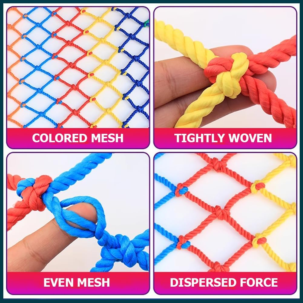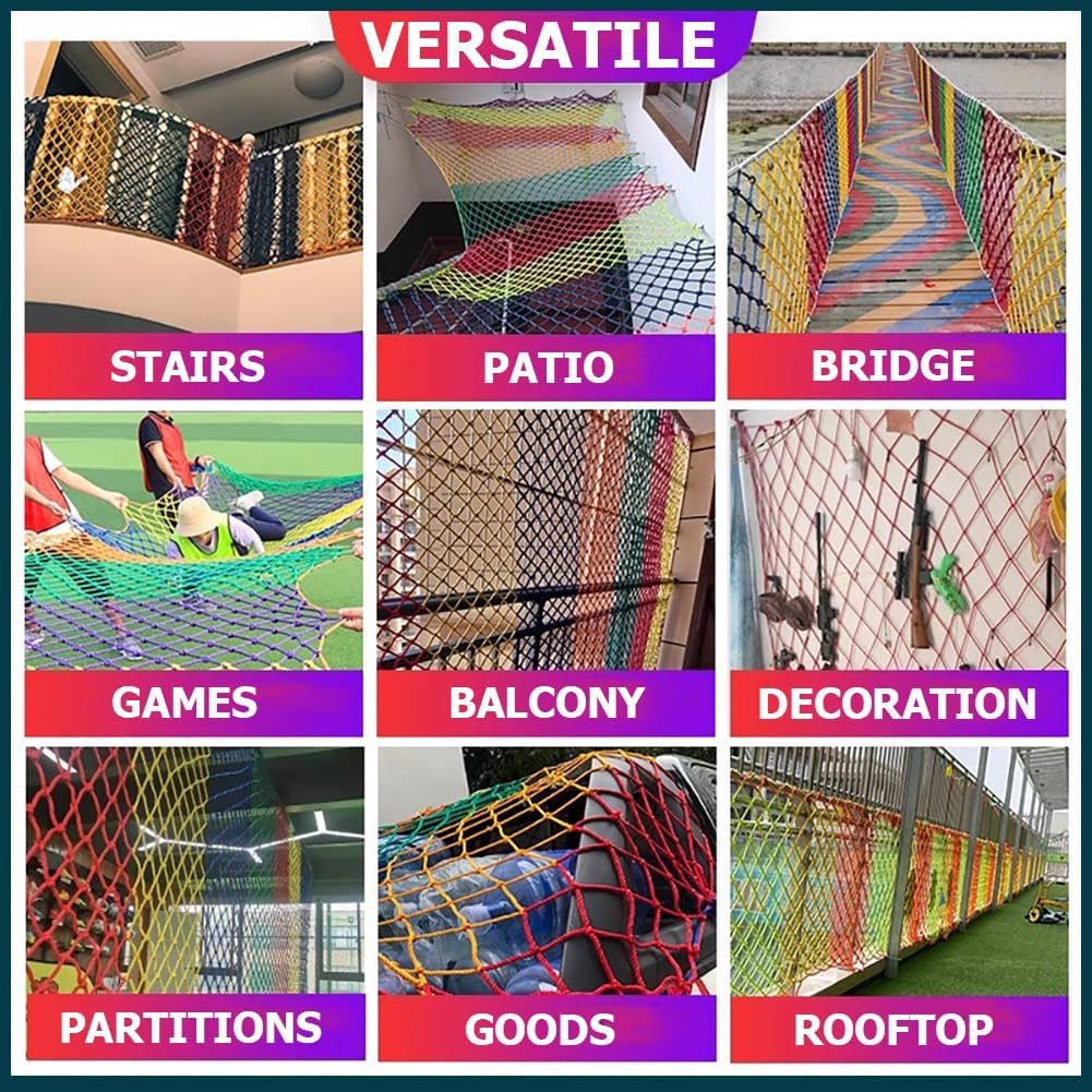 Rete da arrampicata in nylon affidabile: Realizzata con materiali in nylon selezionati, questa colorata rete protettiva da arrampicata offre stabilità e flessibilità equilibrate per diversi ambienti. Il design in corda colorata offre un supporto affidabile e al contempo aggiunge un tocco decorativo al vostro giardino. È la scelta ideale per creare un paradiso per la famiglia. Elevata capacità di carico: La rete in nylon ha una forte capacità di carico, è robusta e affidabile ed è adatta ai bambini più attivi, sia all'interno che all'esterno. Aiuta a prevenire la caduta di oggetti e offre una protezione aggiuntiva per bambini, anziani e animali domestici. Rete protettiva versatile: La nostra rete protettiva ha una vasta gamma di applicazioni e può essere utilizzata per altalene, casette da gioco all'aperto, set da gioco, attrezzature per il divertimento, strutture per l'arrampicata, case sugli alberi e ponti di corda. È pratica ed elegante ed è la scelta ideale per luoghi come giardini e cortili. Facile da installare: La rete da arrampicata in nylon è facile da installare e può essere installata rapidamente utilizzando solo hardware e strumenti di base. Può essere ripiegata quando non in uso per riporla facilmente, risparmiando spazio in garage o capannoni, ed è un elemento indispensabile per qualsiasi ambiente di attività. Supporto per la personalizzazione: Le specifiche della nostra rete da arrampicata prevedono uno spessore della corda di 10 mm e una maglia di 5 cm, e sono disponibili diverse opzioni di dimensioni. Offriamo anche servizi personalizzati. Se avete lo spessore della corda e la dimensione della maglia di cui avete bisogno, possiamo personalizzarla specificamente per voi. Non esitate a contattarci in qualsiasi momento!