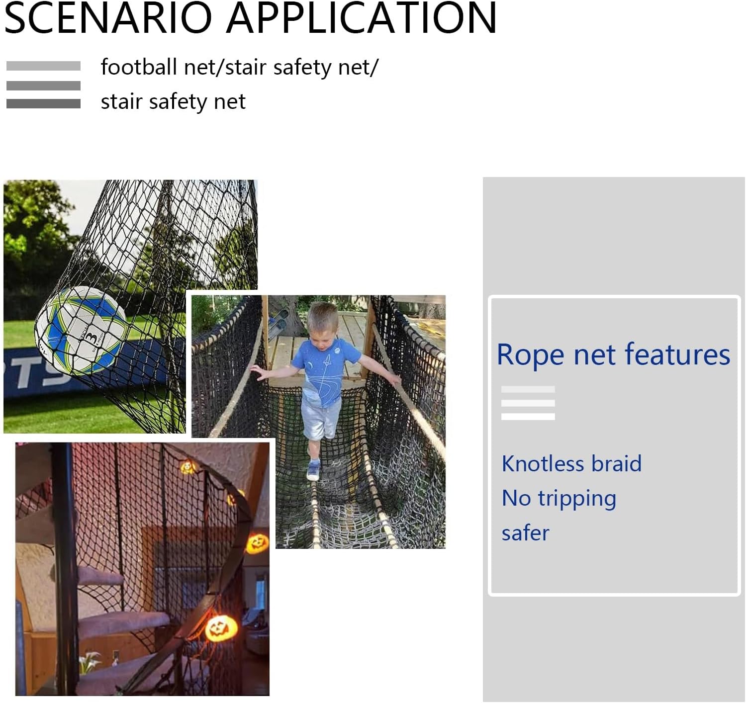 Materiale: questa rete decorativa professionale è realizzata in poliestere di alta qualità, con una robusta corda spessa 4 mm e maglie da 4 cm. La tecnica di lavorazione a maglia a doppio ago migliora la resistenza, garantendo un'elevata capacità di carico per varie applicazioni. Ideale per migliorare il tuo spazio fornendo sicurezza e affidabilità. Perfetto per decorare la casa, il giardino e le decorazioni per eventi. Migliora il tuo spazio con il nostro tessuto decorativo in corda, perfetto per creare splendide pareti fotografiche, eleganti lampadari o sedie a sdraio uniche. Ideale per ambienti interni ed esterni, questa versatile rete in corda aggiunge un tocco di stile a qualsiasi ambiente. Trasforma la tua casa o il tuo giardino senza sforzo mentre ti godi la bellezza dell'arredamento ispirato alla natura. Scopri le nostre versatili reti in corda, disponibili in una varietà di dimensioni per soddisfare le tue esigenze. Perfetto per attività all'aperto, aree gioco o applicazioni di sicurezza. Ogni rete può essere personalizzata per soddisfare le vostre esigenze specifiche, garantendo la massima funzionalità. Migliora il tuo spazio con queste e affidabili reti in corda oggi! Caratteristiche della rete a corda: non facile da allentare, notevole effetto protettivo, resistente al freddo, resistente al gelo, uniformemente stressato, forte forza di trazione, resistente al sole, antivento e impermeabile Diverse dimensioni: le reti in corda sono disponibili in diverse dimensioni. Se la rete di corda di cui hai bisogno non rientra nella gamma di dimensioni sopra, puoi anche regolare la rete individualmente