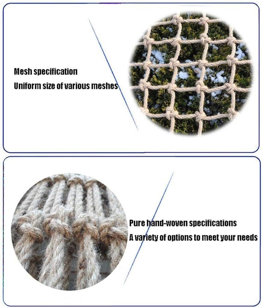 Rete protettiva per la sicurezza dei bambini: progettata per garantire la sicurezza dei bambini, questa rete presenta una morbidezza moderata, è resistente allo sbiadimento e resiste a vento e pioggia, offrendo una soluzione duratura e durevole. Facile da installare e smontare, può essere comodamente piegato e riposto quando non in uso. Rete da arrampicata in corda di canapa resistente: realizzata in tessuto di alta qualità, questa rete da arrampicata fatta a mano vanta una tessitura professionale a più fili annodata per una resistenza eccezionale e resistenza agli urti, rendendola adatta per condizioni esterne. Specifiche della rete di sicurezza: con un diametro del filo di 8 mm e una distanza tra le maglie di 15 cm, questa rete protettiva può essere personalizzata per adattarsi alla spaziatura e al colore della maglia desiderati, garantendo una corrispondenza perfetta per le vostre esigenze. Ambiente di gioco sicuro: questa rete di sicurezza per bambini crea un'area giochi sicura sulle ringhiere, proteggendo il tuo bambino, animale domestico o giocattoli. Impedisce efficacemente ai bambini di scivolare attraverso gli spazi vuoti, fornendo un supporto robusto per scale da balcone interne ed esterne. Rete di protezione versatile: ideale per varie applicazioni, questa rete offre sicurezza per balconi familiari e ringhiere delle scale, fungendo anche da barriera protettiva contro gatti e cadute. Perfetto per case, feste a tema, hotel, caffè, librerie, ristoranti e usi decorativi.