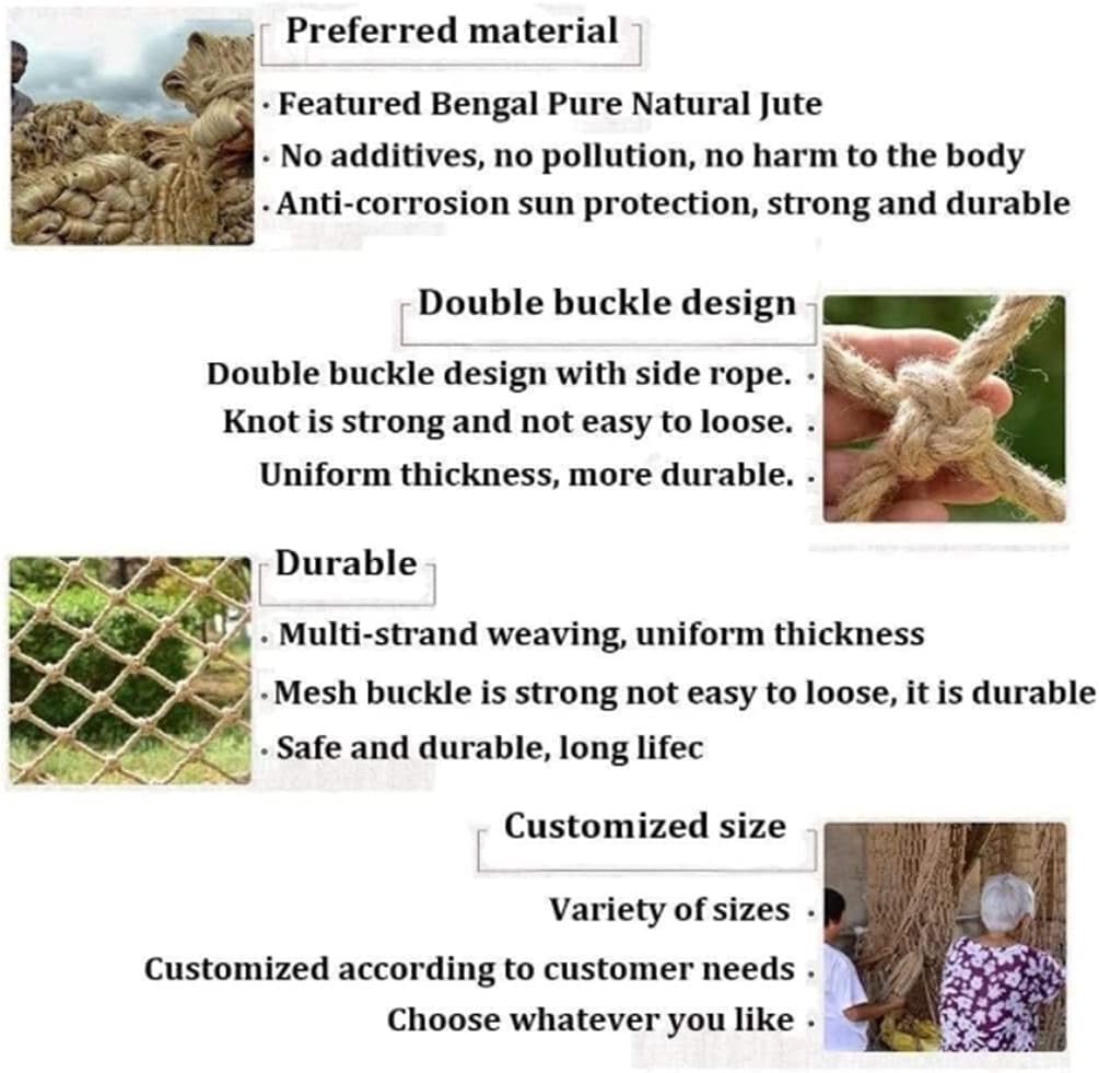 □ Diametro del filo netto di sicurezza 8mm (0,31 "), spaziatura in rete 10 cm (3.93").La rete protettiva può essere personalizzata con la spaziatura e il colore della maglia che si desidera inviare una e-mail per contattarci □ rete pesante da corda, tessitura fatta a mano, rafforzata, la forza è pari, la forza di tiratura è forte, la cassettiera professionale della protezione solare, la tessitura multi-filo, rendono la corda più resistente, ha una forte resistenza agli urti □ Bambino protettivo netto moderato morbidezza, non facile da sbiadire, non ha paura del vento e della pioggia, della lunga durata, della capacità di servizio, della capacità del cuscinetto fino a 300 kg, più resistente, facile da installare e facile da smontare in negozio □ La rete da arrampicata per bambini offre un ambiente di gioco sicuro per bambini, la rete di corda può anche prevenire efficacemente le teste dei bambini, il corpo attraverso la pista e robusto per le scale del balcone indoor e all'aperto per garantire la sicurezza dei bambini □ La rete di corda di canapa multifunzionale è adatta per tutti i tipi di scene, corridoi per porte e finestre, scale, balconi, ringhiere, culle, gabbie per animali domestici, asili nido, parchi divertimenti, strutture pubbliche, recinzioni paesaggistiche, pareti esterne, net per uccelli, reti per la protezione delle piante