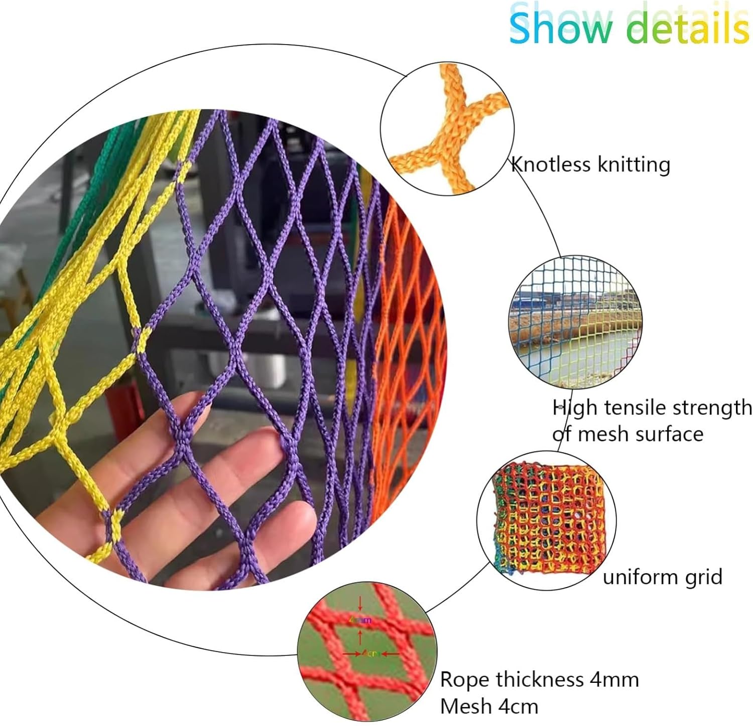 Rete di sicurezza TREPPE: rete decorativa sapientemente tessuta progettata per maggiore flessibilità e stabilità. Questa rete ad alta resistenza offre una protezione significativa pur essendo leggera e resistente al gelo. Ideale per varie applicazioni, previene efficacemente gli incidenti e migliora la sicurezza nel tuo ambiente. Perfetto sia per uso interno che esterno, garantendo tranquillità tutto l'anno. Rete in poliestere senza nodi: questa rete presenta una forte resistenza alla trazione ed è realizzata con tessitura a doppio ago. Con uno spessore di 4 mm e una larghezza di 4 cm, offre un'eccellente resistenza agli urti, rendendolo ideale per varie applicazioni. Leggera ma robusta, questa rete è perfetta per lo sport, la sicurezza e l'uso all'aperto. Garantisci la sicurezza dei tuoi bambini e animali domestici con il nostro cancelletto di sicurezza premium. Progettato per evitare cadute accidentali dalle scale, questo cancello regolabile si adatta a varie aperture e dispone di un meccanismo di bloccaggio sicuro. Ideale per case con piccoli o animali domestici curiosi, il nostro cancello offre tranquillità mentre si fonde perfettamente con il tuo arredamento. Facile da installare, è un must per ogni casa. INNENDEKORATIONSNETZWERK: Verwenden Sie umweltfreundliche Materialien, lehnen Sie die Verwendung von Abfallrecycling ab, kein Geruch, harmlos SICHERHEITSFRAGEN: Viele Kinder und Haustiere fallen versehentlich die Treppe hinunter, was uns wissen lässt, dass die Sicherheit von Kindern und Haustieren nicht ignoriert werden kann