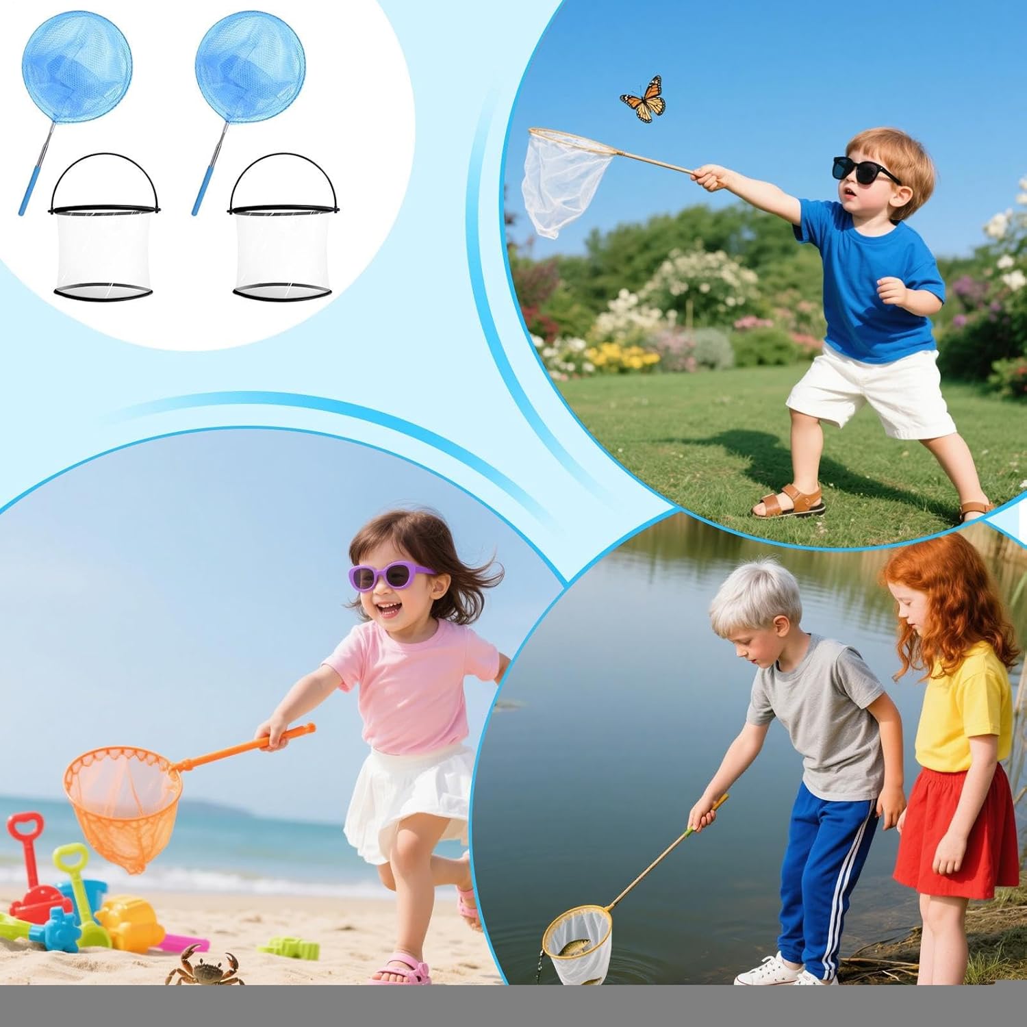 Sicurezza all'Aperto Grip antiscivolo: Manico telescopico a 5 sezioni si regola facilmente, garantendo stabilità durante l'esplorazione di diversi ambienti naturali per bambini. Robustezza Esterna: Realizzata con maglia ad alta densità e acciaio inossidabile anti-ruggine, questa rete per farfalle garantisce durabilità, resistenza alla deformazione e divertimento esplorativo duraturo all'aperto Reti Telescopiche Incluse: Progettato per l'uso esterno, il kit contiene reti telescopiche e secchi pieghevoli. Consente a più utenti di godere simultaneamente di attività interattive di cattura insetti, alimentando il divertimento e l'avventura condivisa nella natura. Design Ecocompatibile: Supporta l'apprendimento naturalistico consentendo l'osservazione sicura delle farfalle, realizzato con rete permeabile per preservare la natura e gli ecosistemi acquatici Regalo Divertente: Esprimi affetto con questo retino da farfalla ideale per bambini e bambine durante compleanni festività Natale o celebrazioni promuovendo gioia curiosità e creando ricordi indimenticabili con un gesto premuroso
