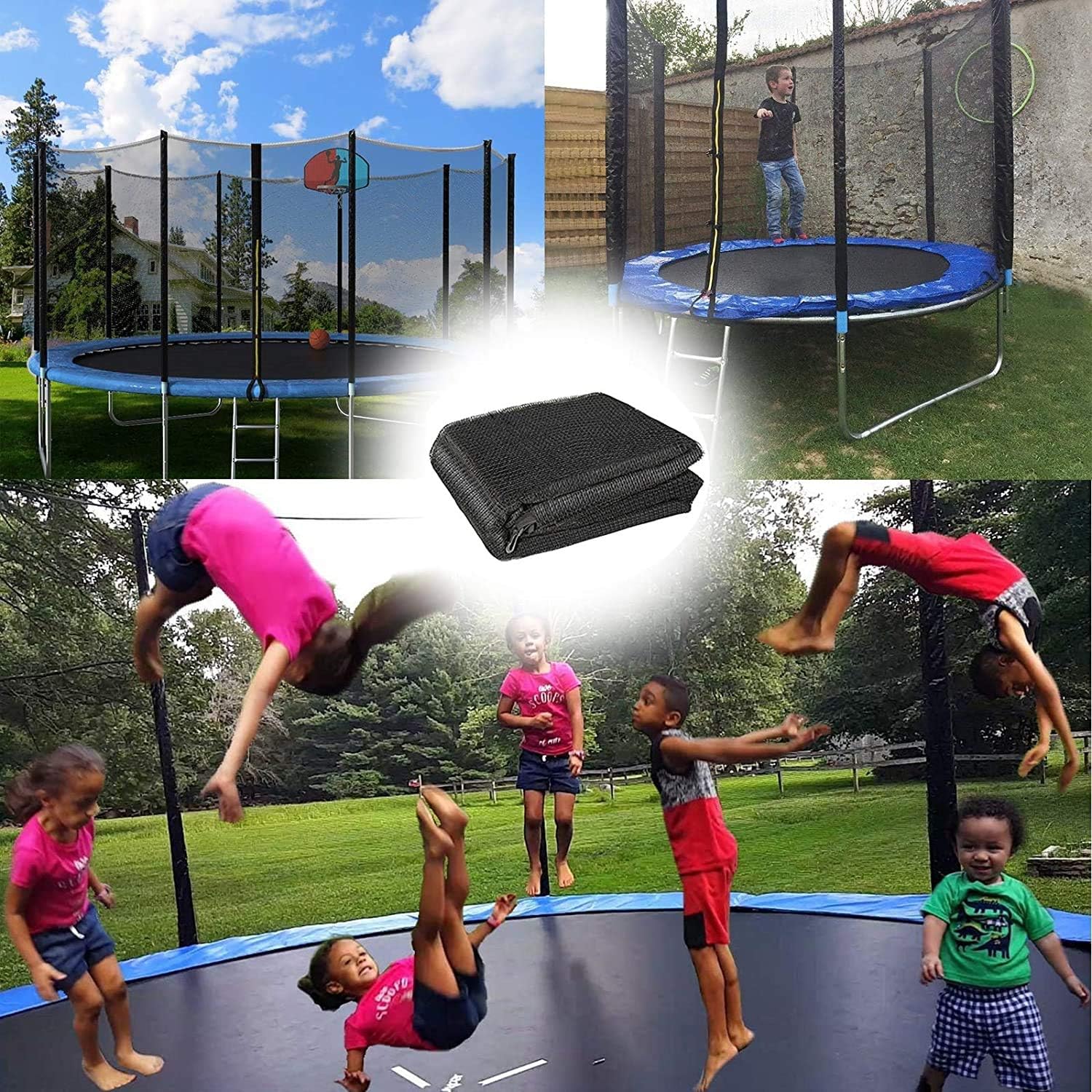 Design universale: diametro 305 cm e altezza 160 cm, diametro manica 60 mm; La rete di sicurezza si adatta alla maggior parte dei trampolini circolari da giardino per esterni che sono telai rotondi di 8 piedi di diametro con 6 pali dritti. Buon materiale: rete per trampolino in PE (polietilene) da 95 g/m² di alta qualità, coperture protettive e antistrappo per picchetti in PVC; Resistente ai raggi UV per proteggere dalle alte temperature, resistente alla corrosione e alla decomposizione durante l'uso prolungato Protezione contro i salti: cerniera e fibbia come sistema a doppia chiusura, garantendo maggiore spazio utilizzabile. Tessuto finemente per evitare che le dita dei mignoli rimangano intrappolate. Proteggi i tuoi bambini riducendo al minimo il rischio di caduta Rete rotonda per trampolino: crea un'esperienza di salto divertente senza limitare la visibilità dei genitori. Regalo perfetto per bambini, ragazzi, ragazze e adolescenti Nota: la confezione contiene solo 305 reti per trampolino da 8 barre, senza pali, senza fissaggi. Prima dell'acquisto, controlla se il diametro esterno del telaio del tuo trampolino è lo stesso o meno e conferma anche il numero di barre