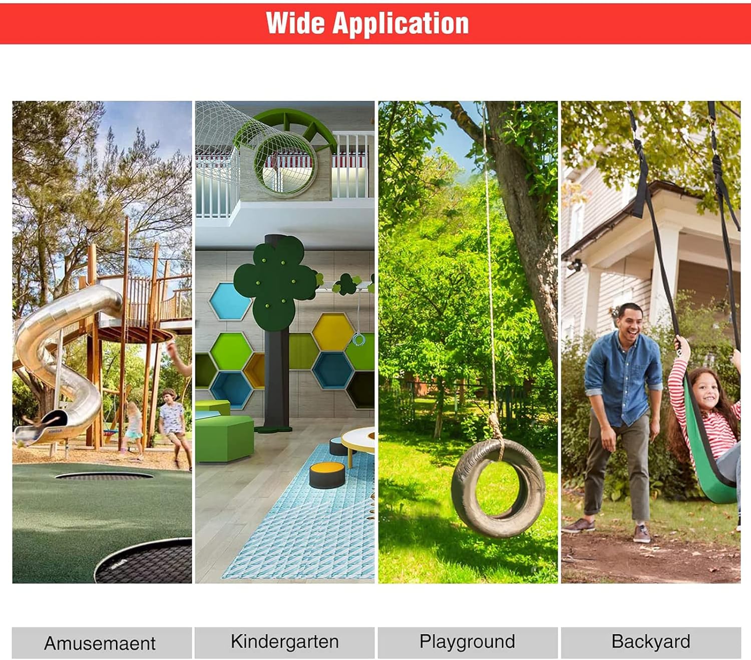 [EXCELLENT PLAYGROUND ACCESSORIES]This climbing net can be regarded as a good replacement part for playground sports equipment. In this way, you can add or change those replacement parts for your equipment. [PREMIUM MATERIAL]- The cargo climbing net is made from heavy-duty high strength polyester, which is safe and durable enough for kids to grip it tightly, so it can last for a long period of time. The size of net is approximate 4.9ft x 6.1ft (148 x 185 cm). With the strong bearing ability, the maximum bearing capacity can be weighed up to 300KG. [EASY TO SET UP]- There are 5 stainless steel buckles on the top of the climbing net, the rope ladder can be easily attached to a swing set, play set, playground equipment and so on. [EYE CATCHING COLORS]- Climbing net is beautiful, very attractive to kids, make your playground equipment & swing set looks beautiful.confidence and reduce anxiety by climbing while entertaining them. [RETE DA ARRAMPICATA MULTIUSO]: Questa rete di corda è utilizzata principalmente per l'arrampicata, adatta ai bambini comuni. Inoltre, può essere utilizzata per proteggere i balconi e le scale di ringhiera della famiglia, le scale di ringhiera di sicurezza, i balconi, le pareti delle terrazze, le feste a tema della famiglia, gli hotel, i caffè, le librerie, i ristoranti, le decorazioni dei soffitti; i cantieri chiusi; le recinzioni delle basi di allenamento del calcio; le coperte di isolamento