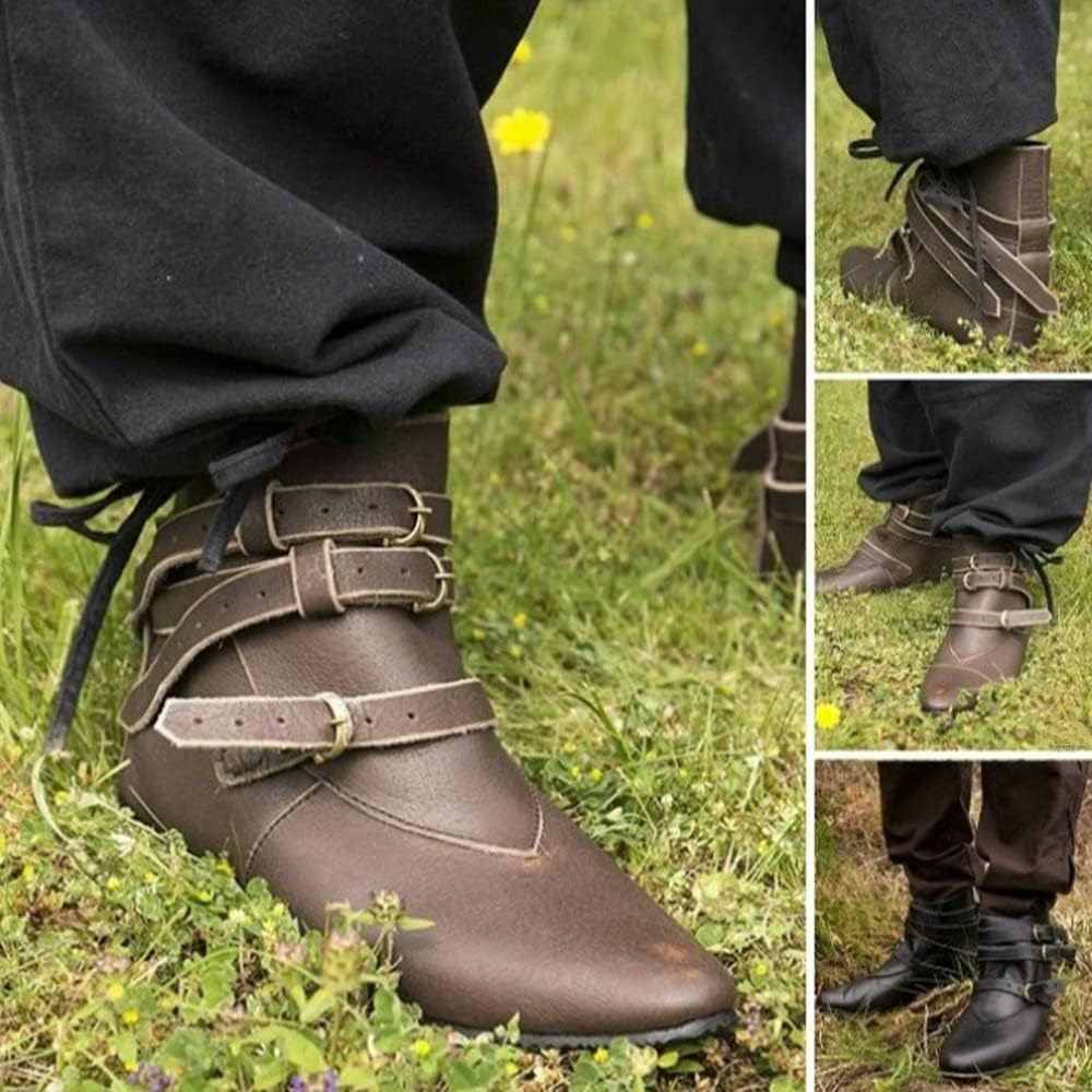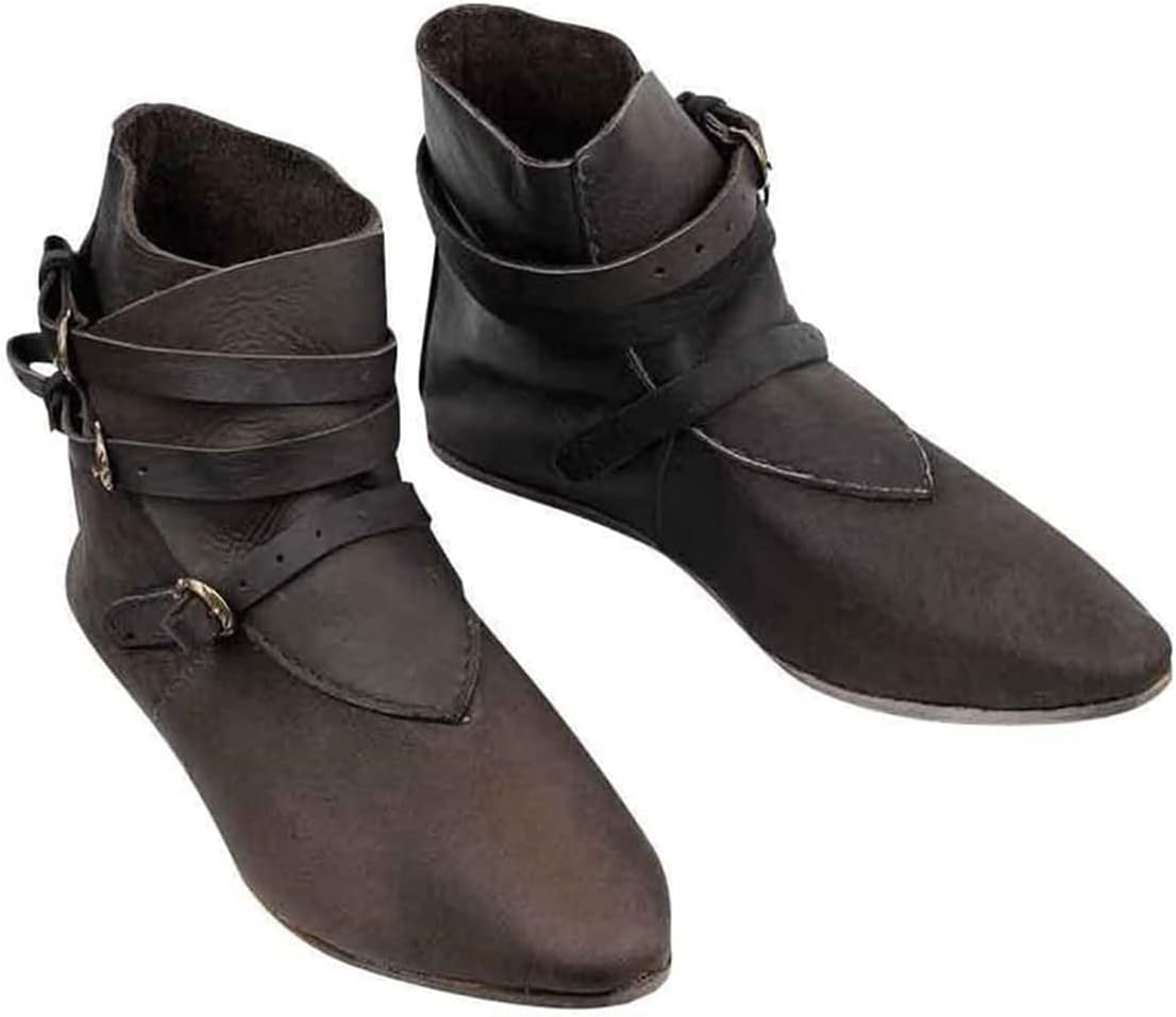 Specifiche: Colore: nero, marrone Stile: retrò medievale Materiale: pelle sintetica Peso: ca. 600g per 800/paio Genere adatto: uomini, donne Dimensioni: 38-48 Lista dei pacchetti: Retro stivali x 1 paio Annotare Per evitare scarpe inappropriate a causa delle piccole dimensioni, si consiglia di acquistare dimensioni più grandi A causa del materiale in pelle, ci sarà un leggero odore, che è un fenomeno normale. Può disperdersi dopo la ventilazione per alcuni giorni