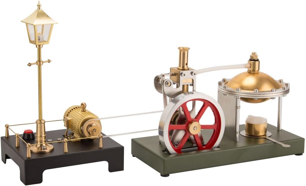 Generatore funzionale alimentato a vapore: guarda la vera potenza del vapore attiva il lampione funzionante, dimostrando la pratica generazione di elettricità in modo coinvolgente e pratico Autentico design retrò: presenta un'estetica industriale in stile vintage con una struttura in metallo dettagliata, perfetta per completare qualsiasi collezione di modelli di motori a vapore Espositore educativo: ideale per l'apprendimento STEM, dimostrando i principi della conversione della potenza del vapore in elettricità in aula o in ambienti educativi domestici Compatibile con i modelli di motore: progettato per accoppiarsi perfettamente con i modelli di motori a vapore (motore venduto separatamente) per una migliore visualizzazione e funzionalità Set completo pronto per l'esposizione: include generatore di vapore preassemblato, lampione e tutti i connettori necessari, nessun assemblaggio complesso richiesto