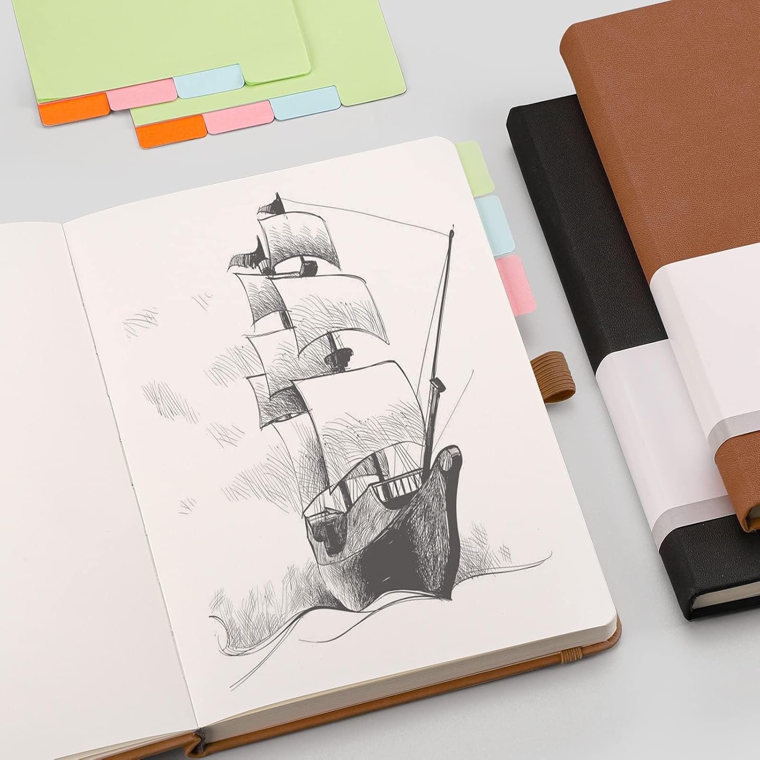 RETTACY Quaderno a pois A5, confezione da 2 - Diario a griglia puntinata con 320 pagine numerate, copertina rigida, carta spessa 120 g/m², 8 fogli perforati, tasca interna