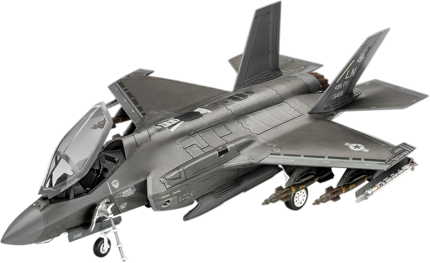 EVIDENZA DELLA MODELLAZIONE DETTAGLIATA: Il Lockheed Martin F-35A Lightning II come kit modello ad alta precisione con dettagli autentici in scala 1:72. TECNOLOGIA STEALTH DI QUINTA GENERAZIONE: questo aereo da combattimento multiruolo impressiona con l'avionica all'avanguardia, la fusione dei sensori e la guerra elettronica. EQUIPAGGIAMENTO E ARMI REALISTICHE: inclusi cappucci FOD, scala pilota e armi estese con JDAM, Paveway II, Sidewinder e AIM-120. TRE VERSIONI AUTENTICHE COSTRUIBILI: contrassegni dettagliati per l'USAF (RAF Lakenheath, Regno Unito), l'aeronautica tedesca (base aerea di Büchel) e l'aeronautica reale olandese (base aerea di Volkel). PERFETTO PER GLI APPASSIONATI DI MODELLISMO E GLI APPASSIONATI DELL'AVIAZIONE: un'eccellente aggiunta a qualsiasi collezione di aerei militari: componenti precisi, incisioni realistiche e verniciatura fedele per un modello impressionante.