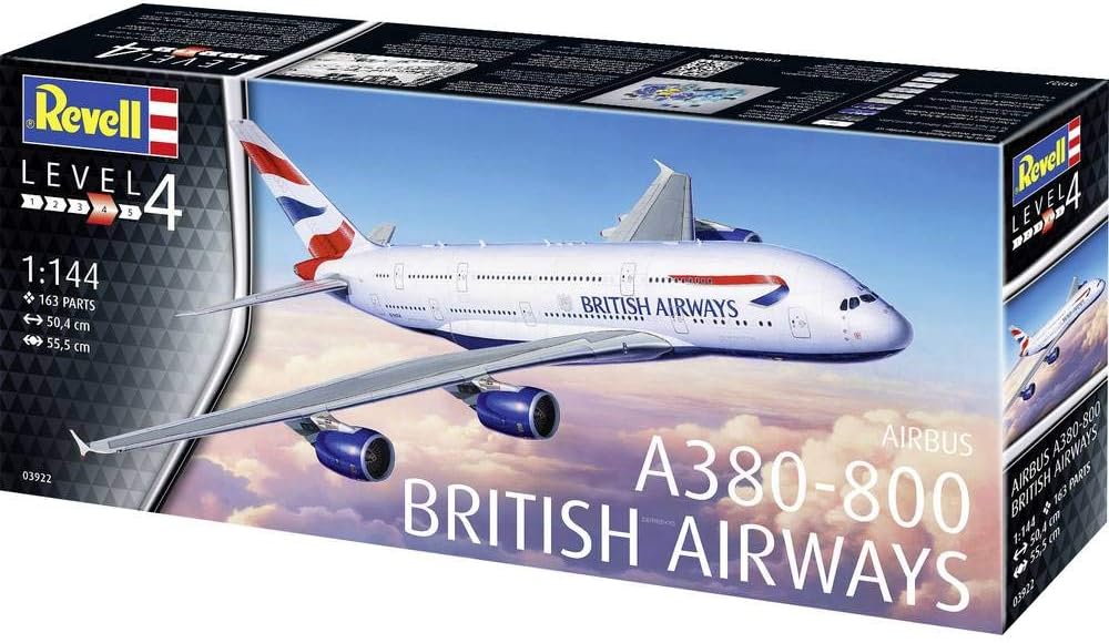 SUPERFICI STRUTTURATE: La superficie del modello è strutturata e conferisce all'aereo un aspetto realistico. I dettagli fini come rivetti e strutture delle piastre vengono riprodotti con precisione. TELAIO DETTAGLIATO: il telaio del modello è dettagliato e ha 22 ruote basate sull'originale. Ciò conferisce al modello un aspetto autentico. IMITAZIONE DELLA CABINA DI GUIDA: La replica del modello contiene un'imitazione della cabina di pilotaggio che corrisponde all'aereo originale. Questo dettaglio contribuisce alla precisione e al realismo del modello. Elevatore e coda verticale DETTAGLIATI: il modello è dotato di un elevatore dettagliato e di uno stabilizzatore verticale, che sono riprodotti con precisione e conferiscono all'aereo un aspetto impressionante. SUPER DECAL CON DECORAZIONE BRITISH AIRWAYS: il kit modello contiene una decalcomania di alta qualità con decorazioni British Airways. Ciò consente al modello di essere progettato individualmente e dotato dei contrassegni della compagnia aerea.