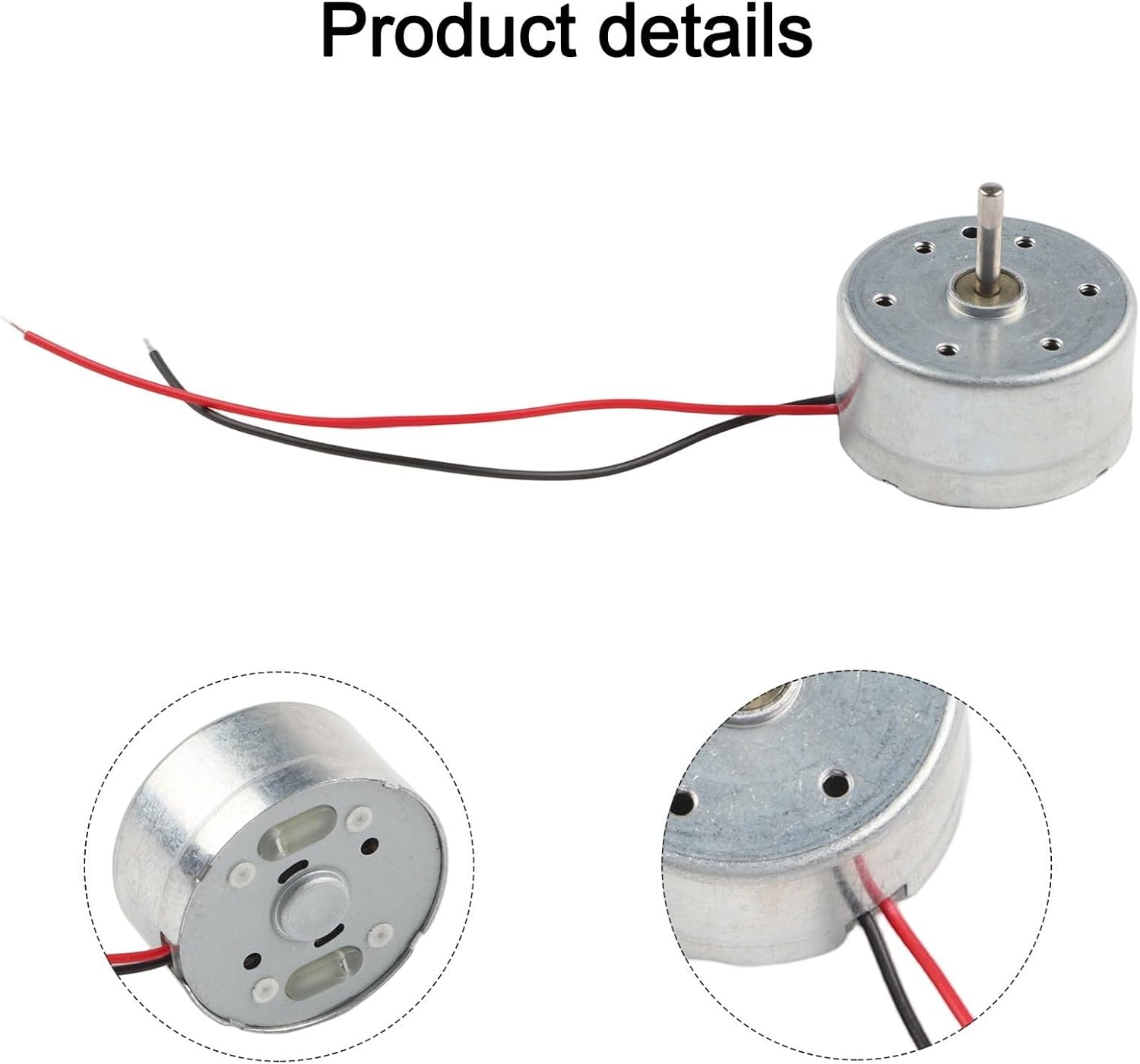 Dimensioni compatte e potenza versatile: con un design compatto da 24 x 12 x 10 mm e albero da 2 mm, questo mini motore CC offre potenti prestazioni a 10300 giri/min a 6 V, perfetto per progetti fai da te, gadget solari e piccoli dispositivi elettronici che richiedono un controllo del movimento affidabile Ampia compatibilità di tensione: funziona in modo efficiente da 1,5 V a 6 V CC, questo motore elettrico offre un controllo della velocità regolabile con velocità a vuoto che vanno da 4967 giri/min a 3 V a 10287 giri/min a 6 V, fornendo flessibilità per varie fonti di alimentazione e applicazioni Prestazioni stabili e basso consumo energetico: progettato con rigorosi standard di controllo di qualità, questo motore mantiene un funzionamento costante con bassa corrente a vuoto (27-42mA attraverso tensioni), prestazioni affidabili risparmiando energia in scenari di uso continuo Costruzione ad alta affidabilità: costruito con materiali di lunga durata e ingegneria di precisione, questo motore elettrico rotondo presenta un albero di lunga durata da 2 mm e caratteristiche prestazionali stabili, rendendolo adatto per un uso prolungato in ventilatori, modelli e progetti automatizzati Facile integrazione e applicazione: dotato di un diametro dell'albero standard di 2 mm e dimensioni compatte, questo motore si installa senza sforzo in creazioni fai da te, progetti di robotica e piccoli dispositivi elettronici, con compatibilità diretta per hobbisti e produttori