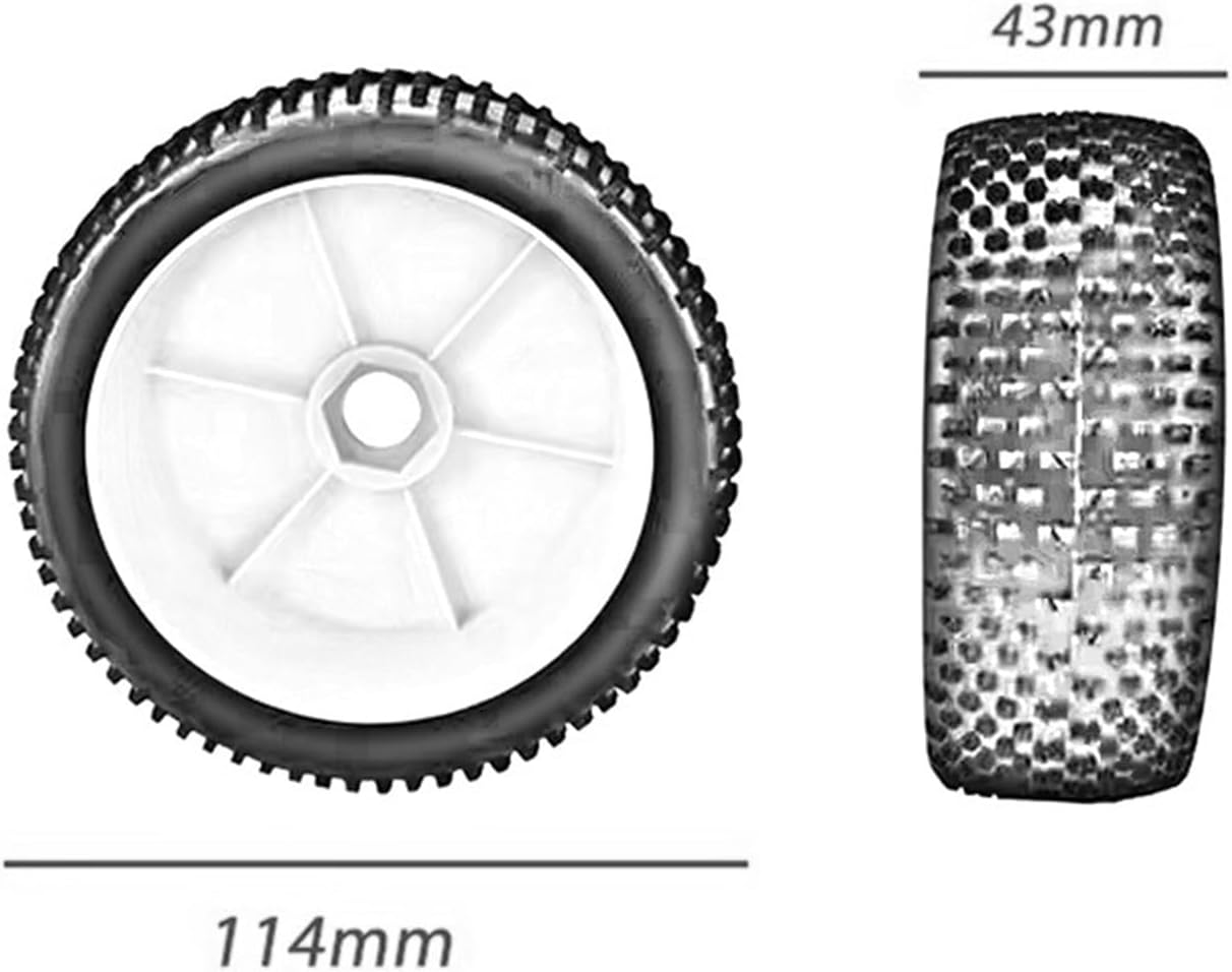 Materiale: questi cerchi sono realizzati con una combinazione di gomma e plastica per soddisfare le esigenze del fuoristrada RC per gli appassionati di Per buggy. Antiscivolo: i pneumatici RC hanno motivi antiscivolo, superficie antiscivolo e presa Per forte. Aderenza: i blocchi dei gradini dei pneumatici RC e i modelli di scanalature multiple creano una presa impareggiabile. Rigorosi standard di controllo qualità: questi accessori per auto hanno rigorosi standard di controllo qualità, hanno funzioni stabili e offrono una scelta affidabile per gli appassionati di auto telecomandate; Servizio: se hai domande sul prodotto o sulla compatibilità, non esitare a contattarci. Ti risponderemo il prima possibile.