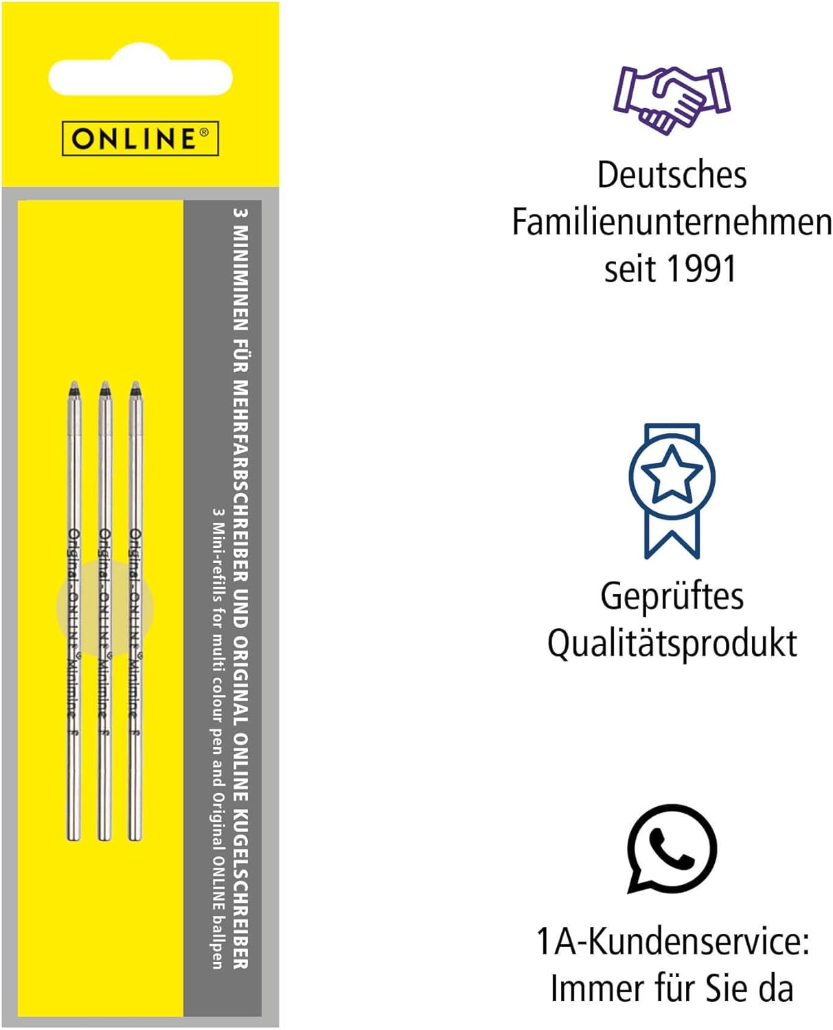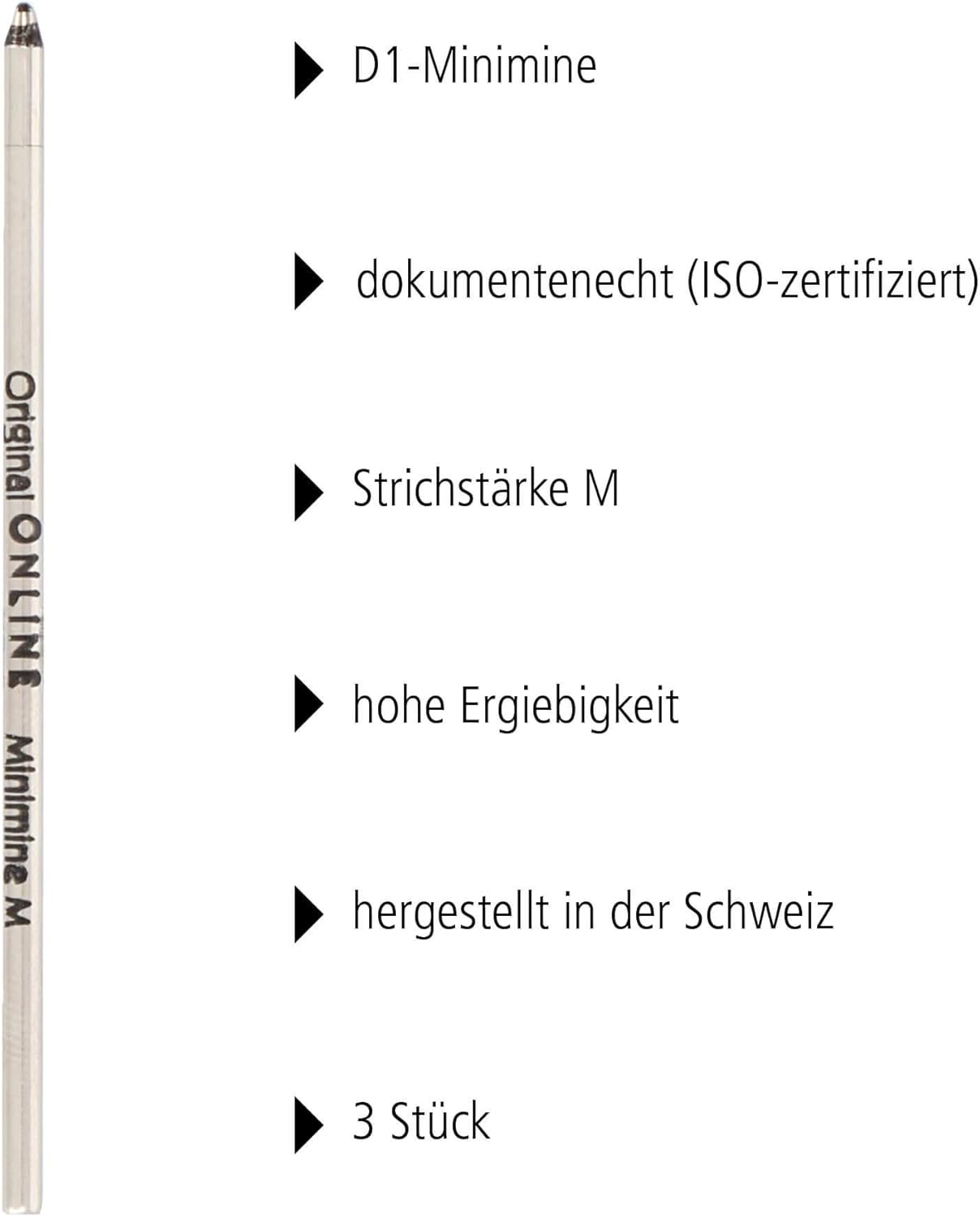 Applicazione: usa la tua penna a sfera preferita ancora e ancora! Le ricariche di ricambio D1 (lunghezza 6,8 cm) sono convenienti per penne multipen, mini penne a sfera e penne multicolore. Lunga durata: ogni ricarica può scrivere circa 1.300 metri, corrisponde a 37 pagine DIN A4! ALTA QUALITÀ: Made in Switzerland, fuori metallo, larghezza media, scrittura liscia, prova documentario, impermeabile, sfera in acciaio inox, ISO 12757-2 DOC Contenuto: il set contiene 3 ricariche, colore nero. Perfetto per lavoro, scuola, ufficio o a casa. ONLINE Qualità del marchio: Online è un'azienda tedesca fondata nel 1991 specializzata in penne, kit per calligrafia, astucci e molto altro ancora. Online offre solo alta qualità!