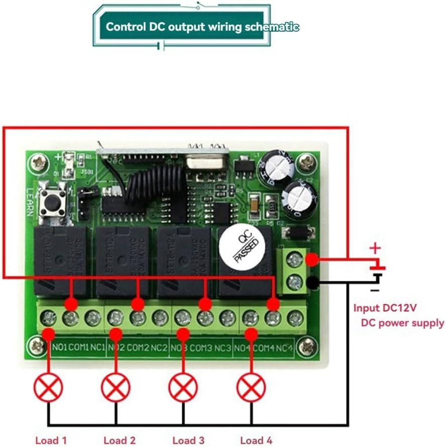 Tipo di controllo: controllo Tensione operativa: CC 6-30 V Tipo di prodotto: interruttore di controllo remoto a 4 canali Frequenza : 433 MHz