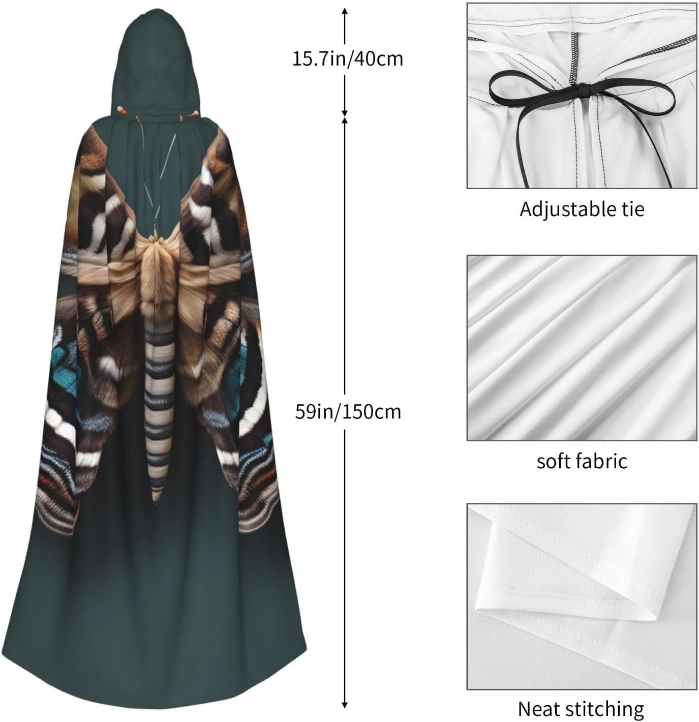 Bella stampa falena Che si tratti di Halloween, Natale, feste in costume, feste in maschera, fumetti, carnevale, riunioni, questo mantello con cappuccio per adulti si adatta a qualsiasi ambiente e migliora il tuo look generale e altro ancora questo mantello aggiunge un tocco di mistero e dramma a qualsiasi abbigliamento.