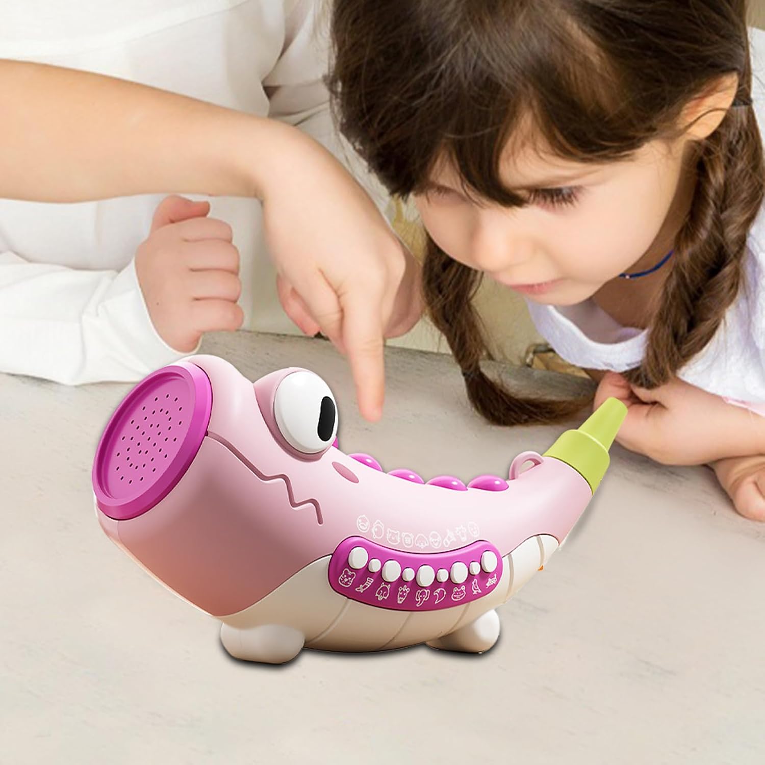 Promuove le capacità motorie: il design a doppio bocchino allena la coordinazione e le capacità motorie in modo giocoso, combinato con il suono attivato dal soffio per un intrattenimento didattico sicuro e interattivo senza funzionamento a batteria. Utilizzo flessibile: perfetto per viaggi in famiglia e attività all'aperto, con tracolla per un facile trasporto in campeggio o per incontrare gli amici, migliora ovviamente le interazioni genitore-figlio attraverso applicazioni di tutte le età. Veri versi degli animali: combina il gioco e l'apprendimento all'aperto. 30 versi autentici di animali in modalità doppia suscitano curiosità e garantiscono scoperte emozionanti. Per interni ed esterni: progettato per l'uso in più ambienti interni ed esterni. La struttura robusta e i materiali sicuri lo rendono un compagno di gioco duraturo che supporta attività ad alta energia come saltare e correre senza compromettere la sicurezza. Igienicamente pulito: facile da pulire grazie al boccaglio rimovibile per un'igiene riutilizzabile, una cura sicura per i bambini e favorisce il gioco di ruolo per lo sviluppo del linguaggio in un formato giocattolo sicuro