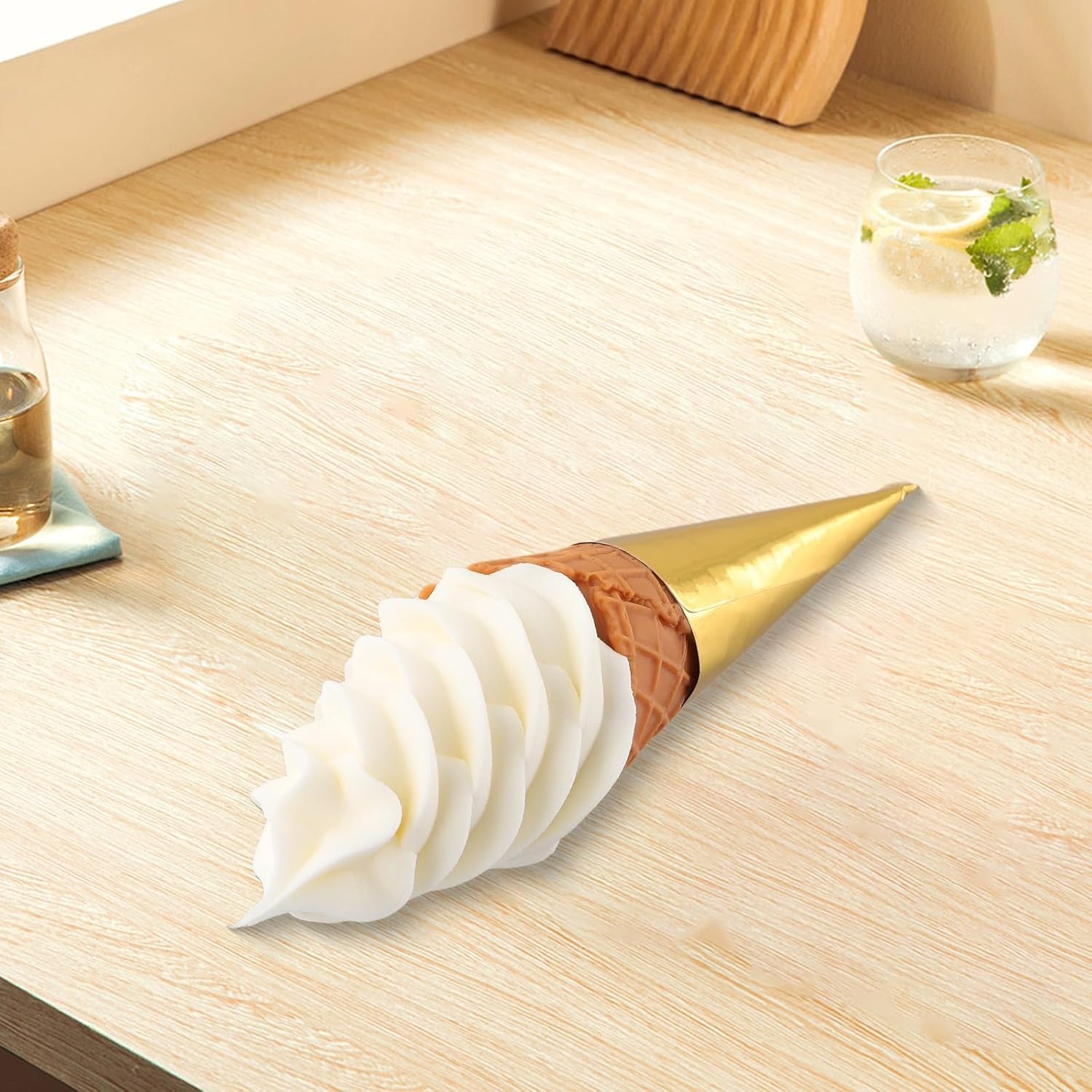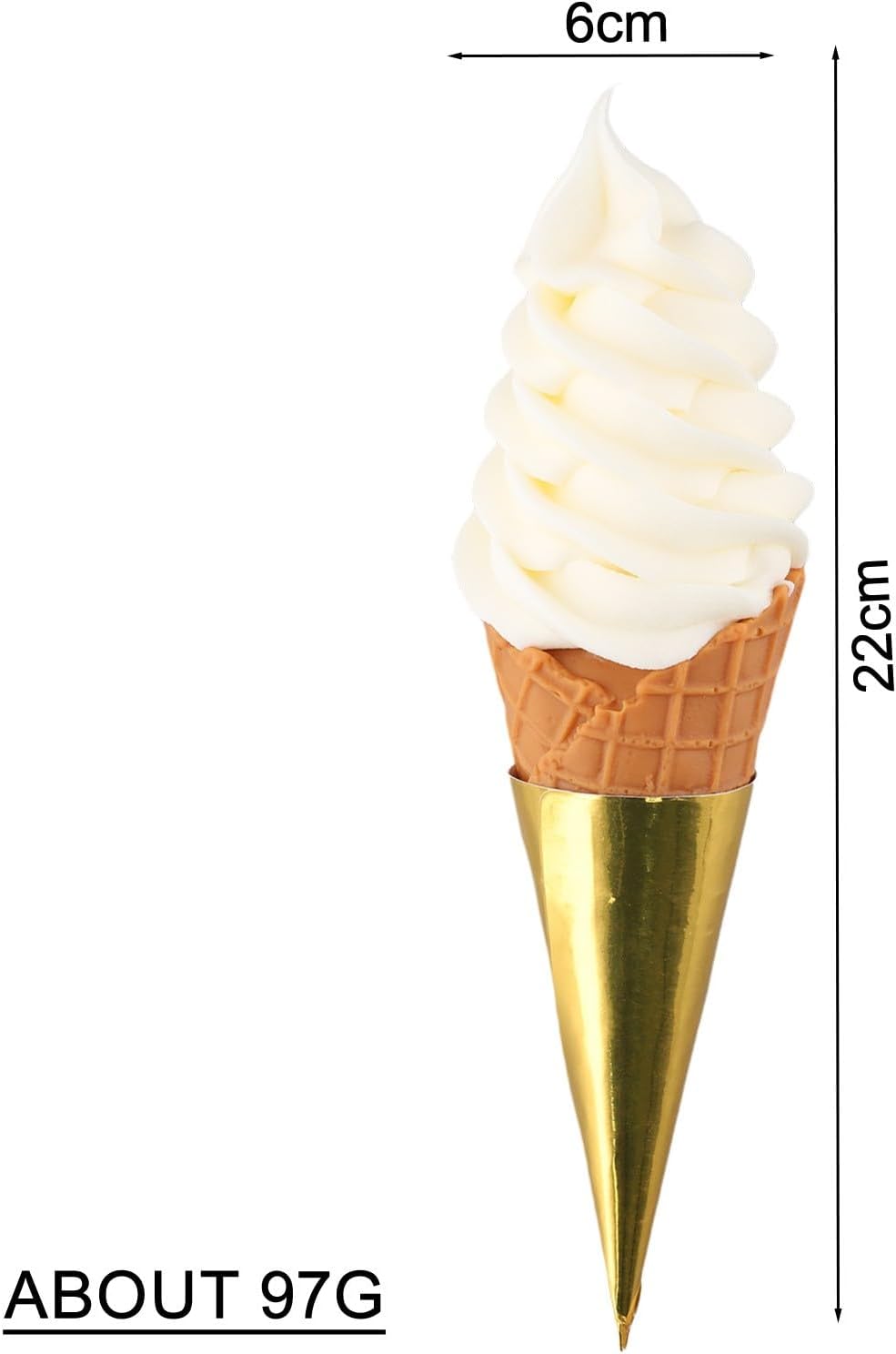 Oggetti di scena simulati per gelato, modello di cono finto per oggetti di scena, 22 cm 【Design realistico】 Questo modello di gelato simulato è realizzato in PVC e materiale in resina, che imita perfettamente l'aspetto di un delizioso cono gelato. Aggiunge un tocco realistico a qualsiasi display o servizio fotografico. 【Attenzione ai dettagli】 Con un'attenta lavorazione artigianale, questo finto gelato presenta dettagli intricati, dalla consistenza del gelato al motivo a cono di cialda. Sembra convincente che tu possa confonderlo con l'oggetto.,Uso: che tu sia un visual merchandiser, un fotografo di cibo o semplicemente desideri aggiungere un po' di divertimento alla decorazione della tua casa, questo modello di finto gelato è la scelta perfetta. Può essere utilizzato in bar, gelaterie, esposizioni di dessert o come supporto per la fotografia. DIMENSIONE IDEALE: Con 22 cm, questo modello di gelato simulato è della dimensione perfetta per attirare l'attenzione senza occupare troppo spazio. È compatto ma accattivante, il che lo rende un'ottima aggiunta a qualsiasi esposizione o progetto.