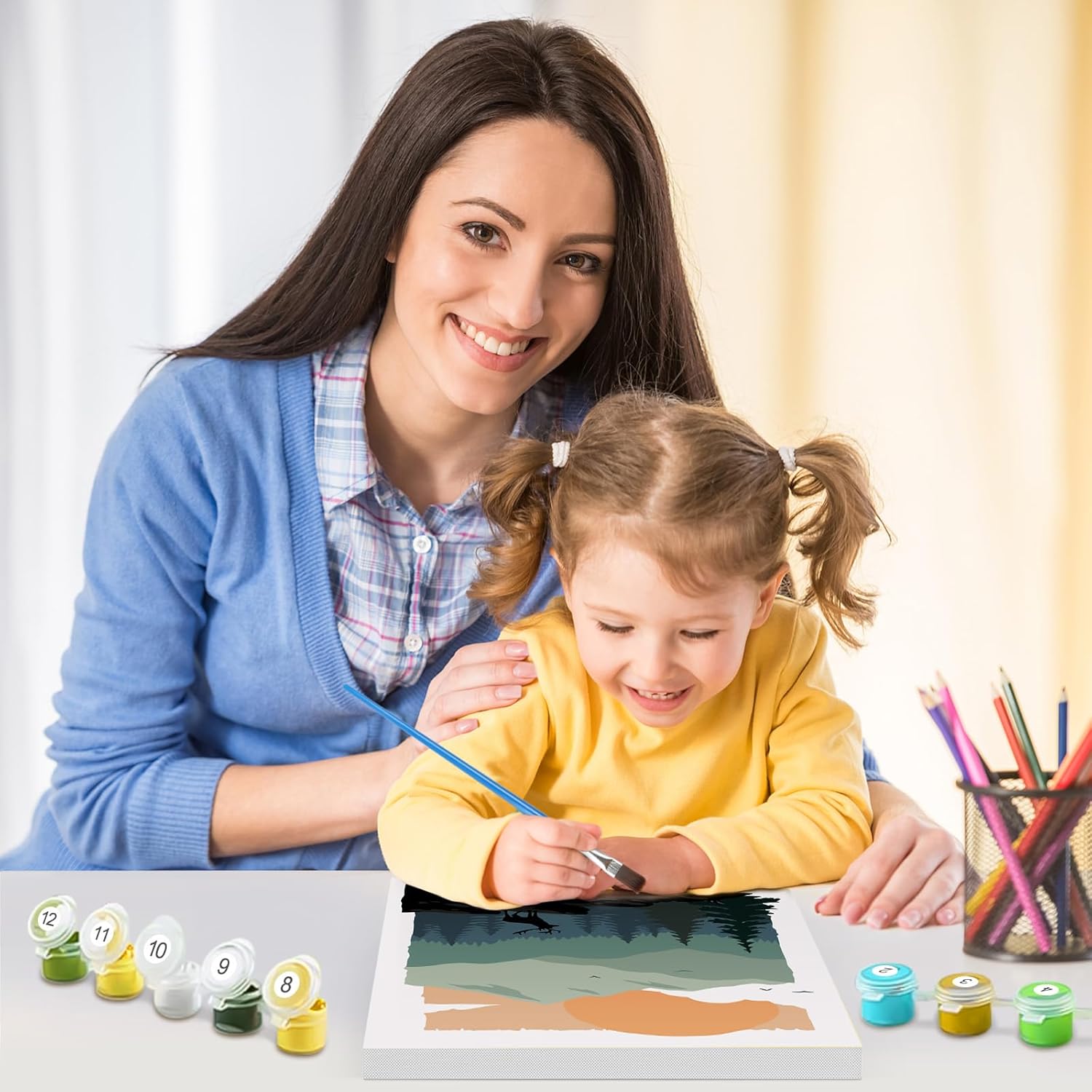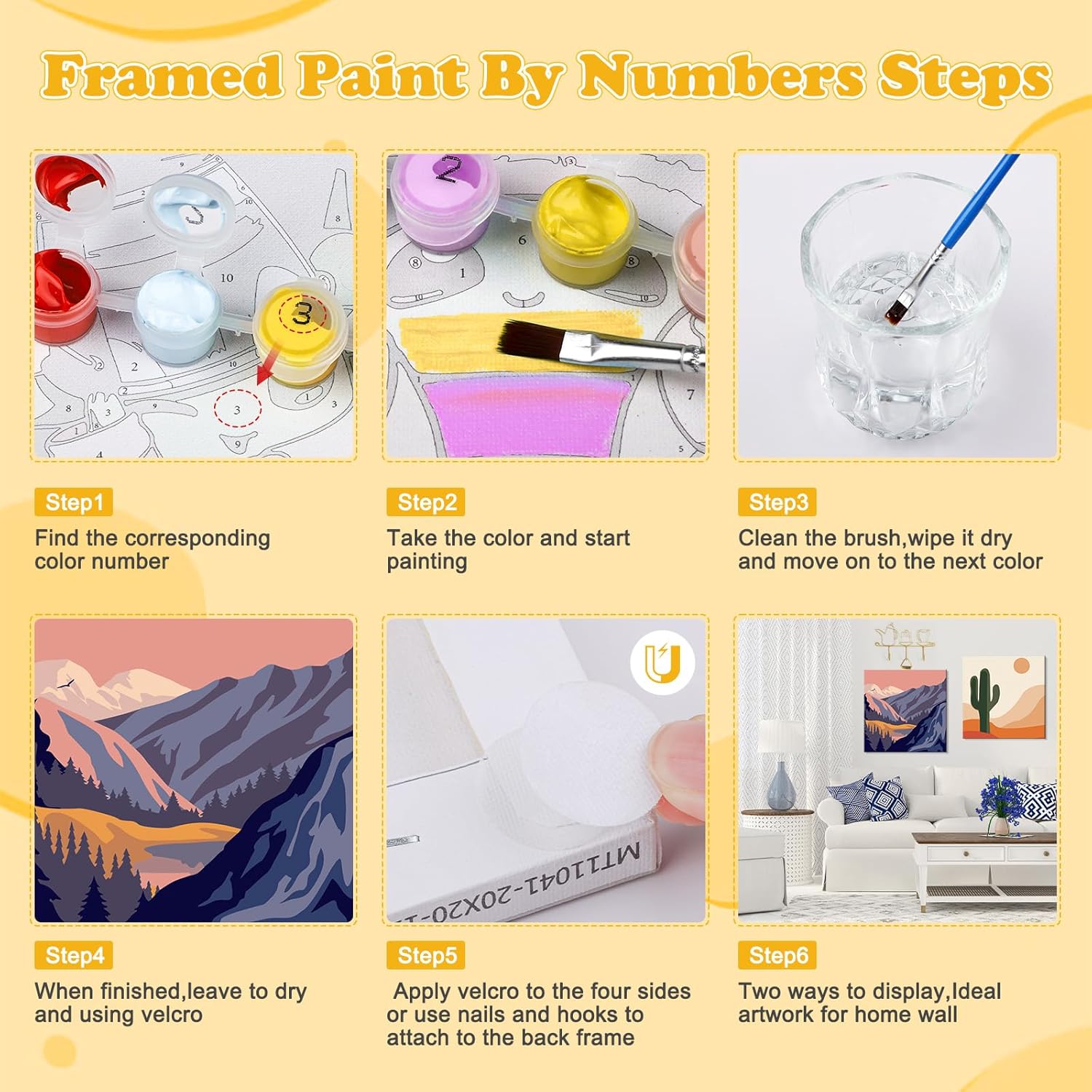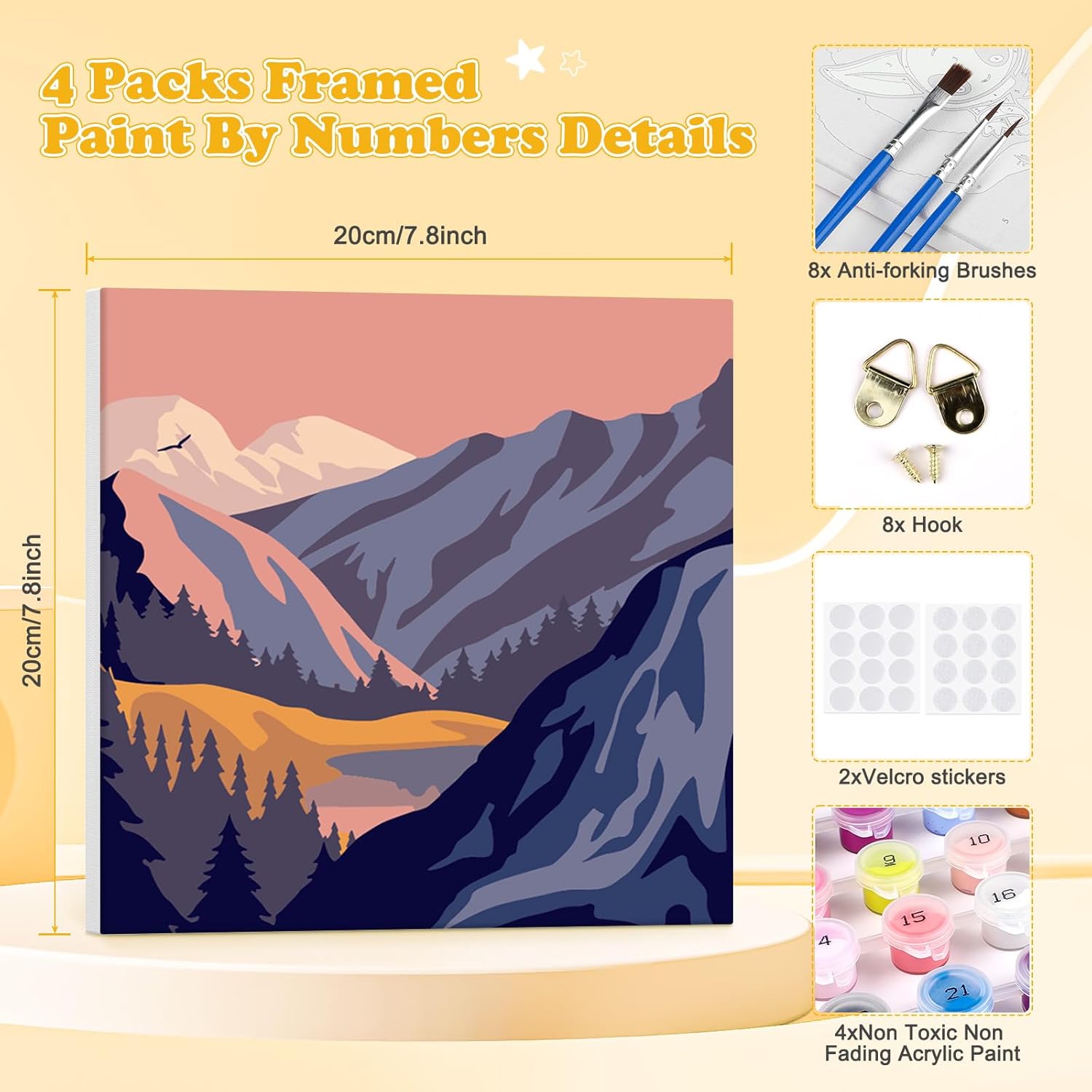 Kit Completo per Dipingere con i Numeri: Questo set include tutto ciò che ti serve per creare un'opera d'arte unica. Ogni kit comprende pittura ad olio, pennelli di diverse , una cornice in legno per appendere facilmente il tuo quadro finito. Facile e Divertente per Tutti: Perfetto per principianti, adulti e bambini. Le aree numerate sulla tela di alta qualità semplificano il processo di pittura, rendendolo un'esperienza creativa e rilassante. Regalo Creativo per Ogni Occasione: Questo kit è un regalo perfetto per amanti dell'arte, genitori e bambini, ideale per Natale, compleanni o altre occasioni speciali. Pittura Rilassante e Teraputica: Dipingere con i numeri è un'attività che aiuta a ridurre lo stress e favorisce il relax. È un modo perfetto per passare il tempo libero in modo produttivo e stimolante, migliorando le tue abilità artistiche. Decorazione Facile e Immediata (Dimensione 20x20 cm): Una volta terminata la tua pittura, puoi facilmente appenderla grazie alla cornice in legno e agli ottoni magnetici inclusi nel kit.