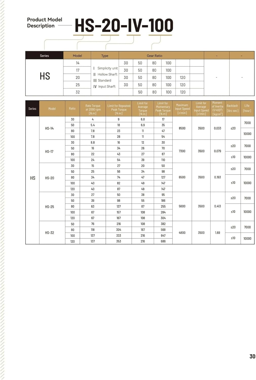Numero di modello: HS-17-I Disposizione degli ingranaggi: armonica