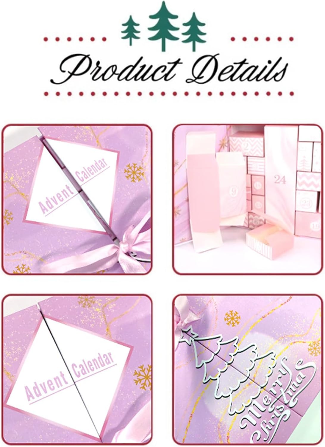 Esperienza festosa per il conto alla rovescia: goditi un'esperienza festosa per il conto alla rovescia poiché ciascuno dei 24 scomparti speciali rivela uno speciale momento quotidiano di unboxing, creando senza sforzo ricordi gioiosi delle festività natalizie. Divertimento interattivo durante le vacanze: le scatole per il conto alla rovescia incoraggiano l'interazione quotidiana della famiglia aumentando l'entusiasmo festivo dei bambini con ogni scatola aperta, creando senza sforzo ricordi gioiosi delle festività natalizie. Ciondolo decorativo festivo: questa scatola per il conto alla rovescia combina un design elegante con l'uso quotidiano, diffondendo allegria festosa e abbellisce il tuo spazio con iconici motivi natalizi e invernali per garantire un'esperienza di vacanza indimenticabile. Scena applicabile: questa scatola è progettata per migliorare l'esperienza di visualizzazione. Può ospitare dolci, appunti e piccoli gioielli, rendendolo ideale per il divertimento della famiglia e la gioia festiva con un uso versatile. Esecuzione squisita: progettata per i ricordi delle vacanze, questa scatola pieghevole per il conto alla rovescia presenta carta goffrata e un'estetica di lavorazione robusta ma elegante, perfetta per creare ricordi duraturi delle vacanze.